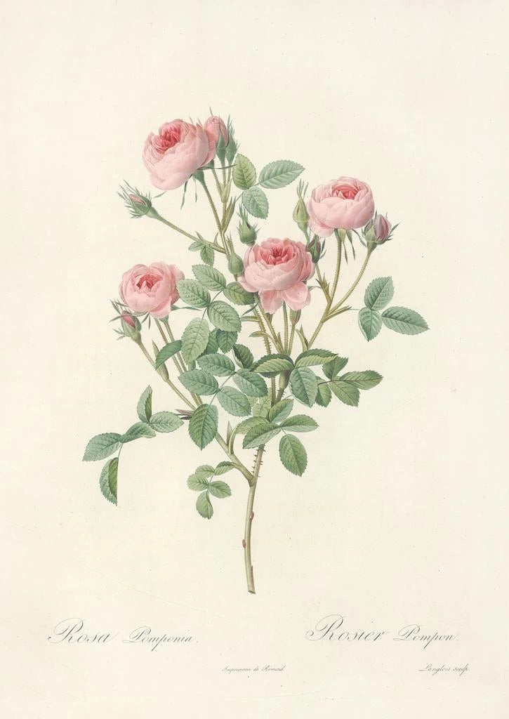 Pierre Joseph Redouté, vaak de "Raphaël der bloemen" genoemd, is een iconische figuur in de botanische kunst in de 18e eeuw. Geboren in 1759 in België, wist hij de essentie van planten vast te leggen met ongeëvenaarde precisie, beïnvloed door de naturalistische stromingen van zijn tijd. Zijn carrière werd gekenmerkt door samenwerkingen met gerenommeerde botanici en prestigieuze opdrachten, onder andere voor de koninklijke tuinen van Frankrijk. Redouté heeft een blijvende erfenis achtergelaten in de kunstwereld, zijn werken blijven inspireren voor liefhebbers van botanica en bloemkunst. Rosa Pomponia is een van zijn meest gewaardeerde creaties, getuigend van zijn uitzonderlijk talent.