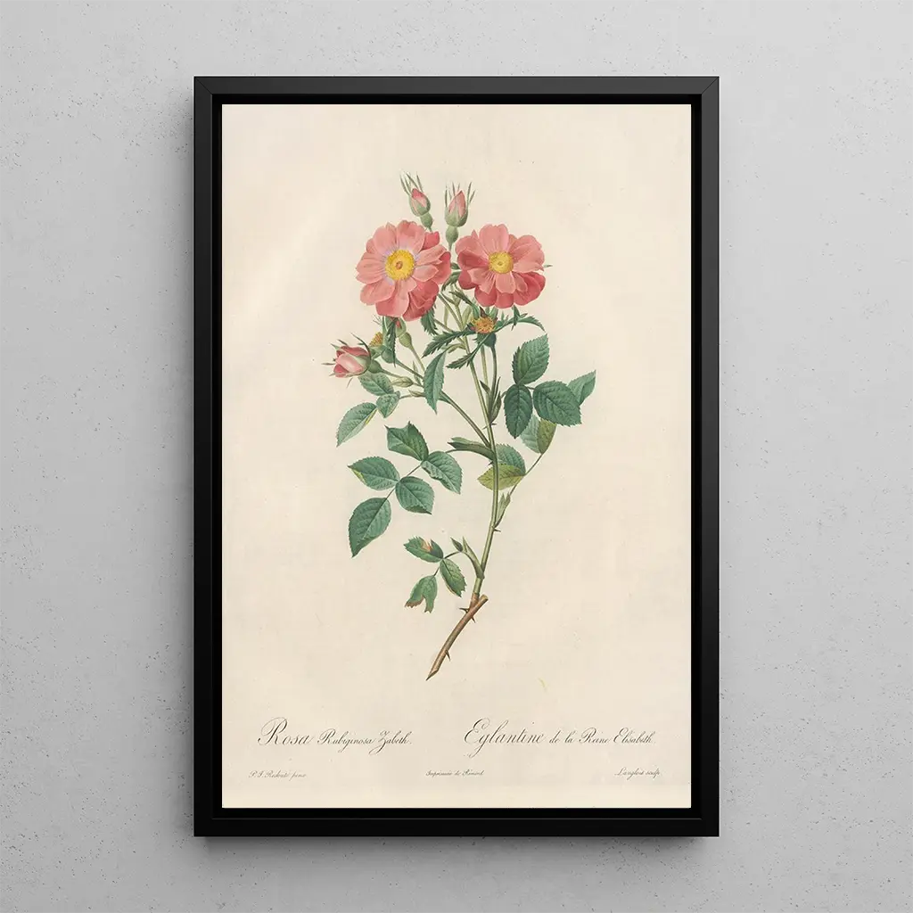 Schilderij Rosa Rubiginosa Zabeth - Pierre Joseph Redouté | Kunstdruk