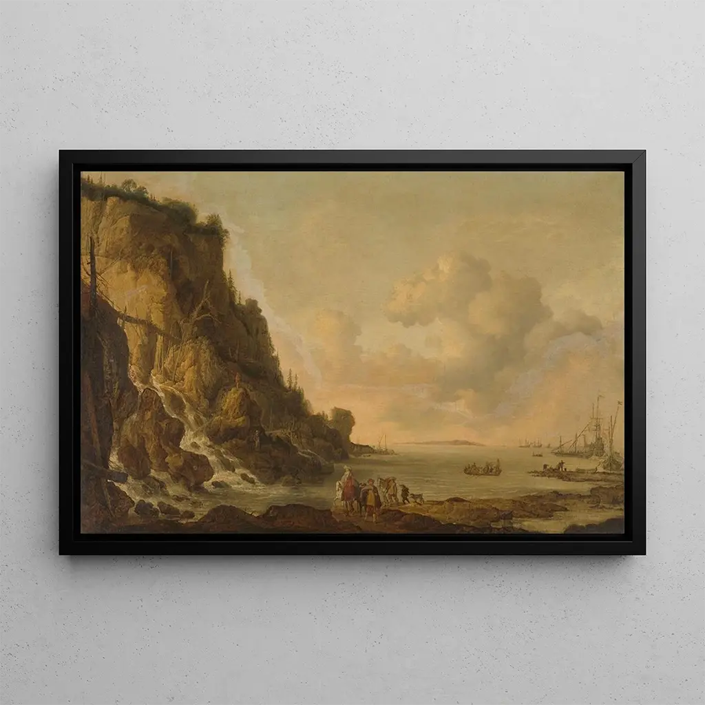 De kunstdruk van Côte rocheuse dompelt ons onder in een maritiem landschap waar de kracht van de elementen voelbaar is. De rotsen, uitgehouwen door de golven, staan trots onder een bewolkte hemel, terwijl de tinten blauw en grijs een sfeer creëren die zowel dramatisch als rustgevend is. De techniek van Simon de Vlieger, meester van het maritieme landschap, komt tot uiting in nauwkeurige penseelstreken die de woelige zee tot leven brengen. Het geheel nodigt uit tot contemplatie en voert ons naar verre kusten waar de natuur heerst.