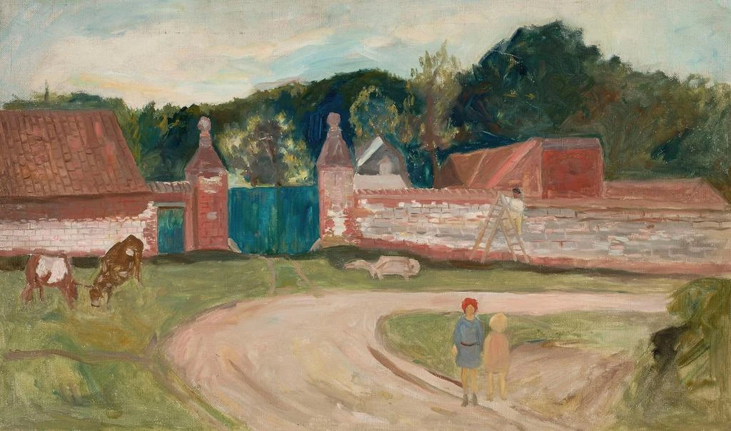 Tadeusz Makowski, né en Pologne en 1882, est un peintre qui a su allier les influences de son pays natal avec celles de l'art moderne. Évoluant principalement dans les années 1920 et 1930, il a été marqué par le mouvement expressionniste, tout en intégrant des éléments du folklore polonais dans son travail. Sa carrière l'a conduit à Paris, où il a côtoyé d'autres artistes avant-gardistes. "Route devant la ferme" témoigne de son engagement à représenter la vie quotidienne et les paysages de son enfance, tout en s'inscrivant dans une époque où l'art cherchait à exprimer des émotions profondes et des réalités sociales.