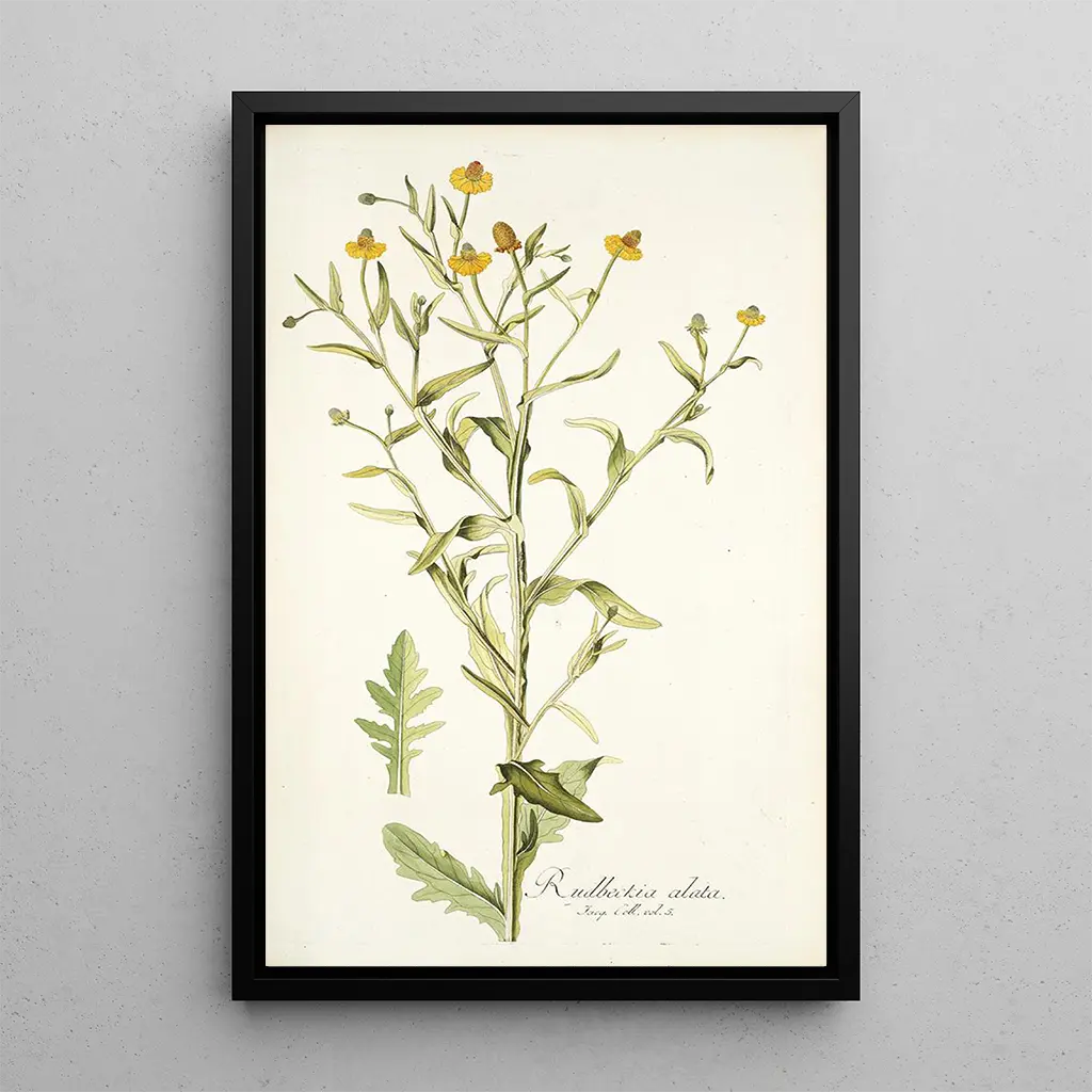 De kunstdruk van Rudbeckia alata, een werk van Nikolaus Joseph Freiherr von Jacquin, verlicht de ruimte met zijn levendige en vrolijke kleuren. De gouden bloemblaadjes en het donkere hart van deze bloem creëren een opvallend contrast dat de warmte van zomerse dagen oproept. De aquareltechniek, beheerst door Jacquin, maakt het mogelijk om de textuur en de helderheid van de bloemen met grote precisie weer te geven. Dit werk nodigt uit tot contemplatie en verwondering, en viert de vergankelijke schoonheid van de natuur.