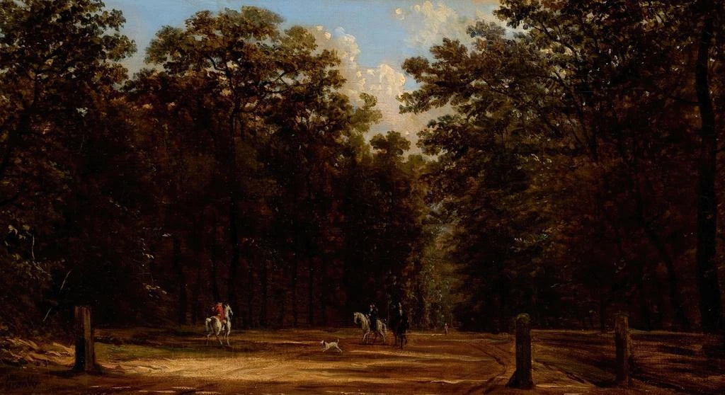 Victor de Grailly, peintre français du XIXe siècle, est souvent associé au mouvement romantique. Son œuvre reflète une fascination pour la nature et la vie aristocratique de son époque. Influencé par des maîtres comme Eugène Delacroix, il développe un style qui allie réalisme et idéalisation. Ses tableaux, souvent centrés sur des scènes de la vie quotidienne, témoignent d'une époque où l'art se veut à la fois un reflet de la société et une célébration de la beauté. "Cavaliers dans un parc" s'inscrit parfaitement dans cette tradition, offrant un aperçu de la vie noble à travers le prisme de la nature.