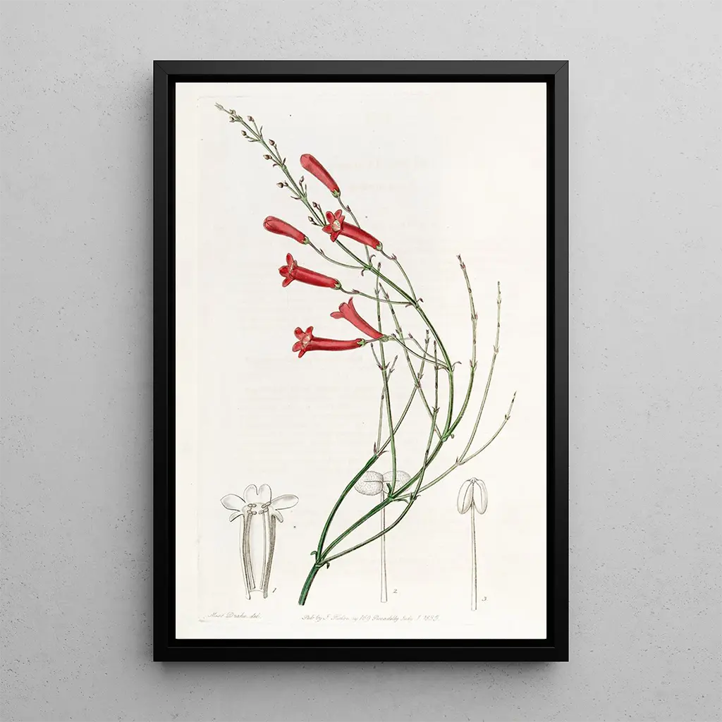 De kunstdruk van de Russelia jonciforme is een ideaal decoratief stuk om je interieur te verrijken, of het nu in een woonkamer, kantoor of slaapkamer is. De kwaliteit van de afdruk en de trouw aan de oorspronkelijke kleuren maken het een aantrekkelijke keuze voor liefhebbers van botanica en kunst. Door dit doek in je inrichting te integreren, breng je een vleugje natuur en vitaliteit in je ruimte. De esthetische aantrekkingskracht van dit werk, met zijn elegante vormen en heldere kleuren, maakt het een centraal element dat de aandacht trekt en bewondering oproept.