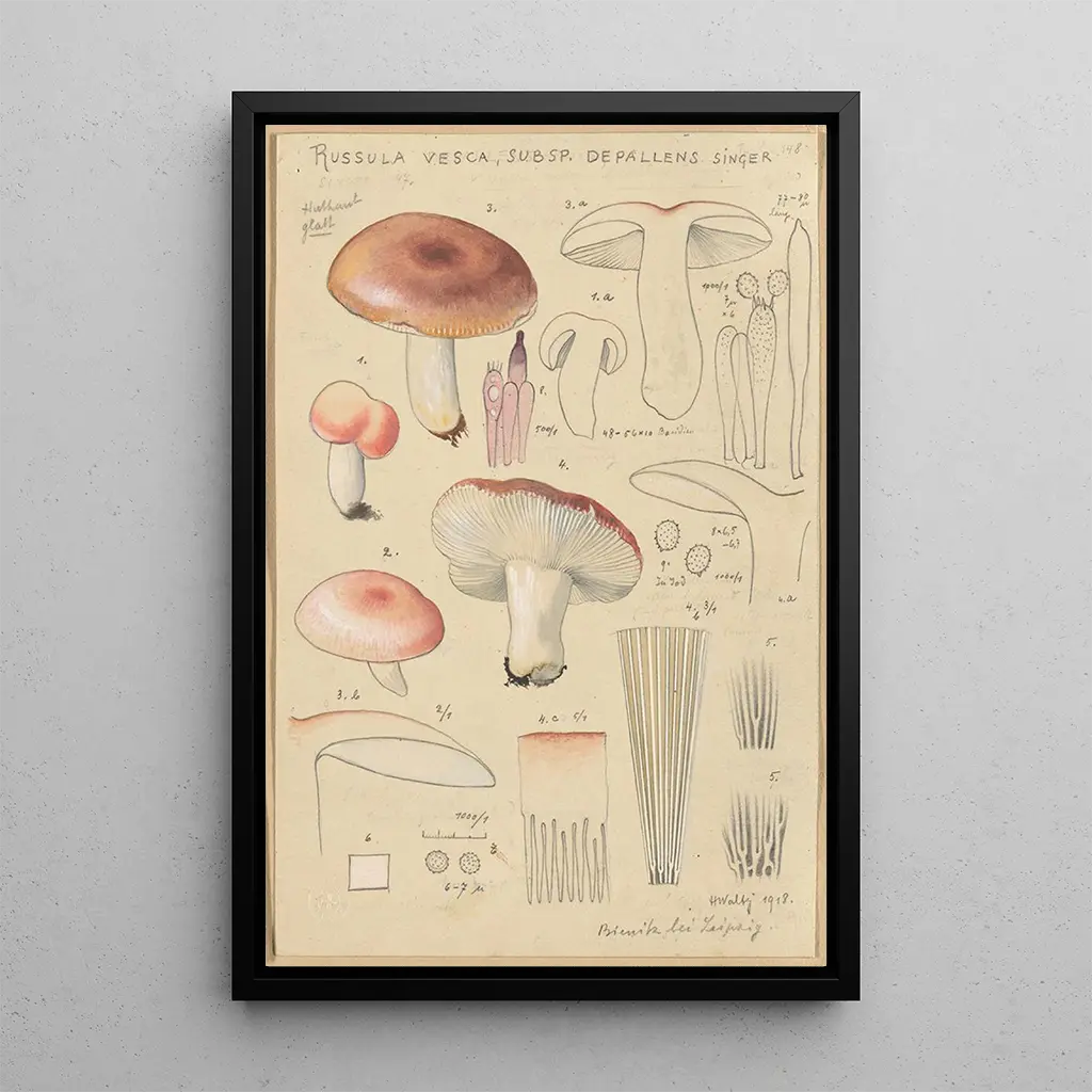 De kunstdruk van Russula vesca subsp Depallens singer is een ideale decoratieve keuze voor wie een vleugje originaliteit aan hun interieur wil toevoegen. Of het nu in een woonkamer, kantoor of slaapkamer is, dit doek trekt de aandacht en wekt interesse. De afdrukkwaliteit garandeert een opmerkelijke fideliteit aan de details en kleuren van het originele kunstwerk, wat zorgt voor een duurzame esthetische aantrekkingskracht. Door dit kunstwerk in uw inrichting te integreren, geeft u uw ruimte een warme en uitnodigende sfeer, terwijl u de schoonheid van de natuur en de rijkdom van haar ecosysteem viert.