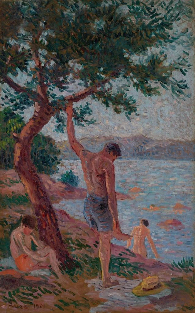 Schilderij Saint-Tropez zwemmers onder de dennenbomen - Maximilien Luce | Kunstdruk