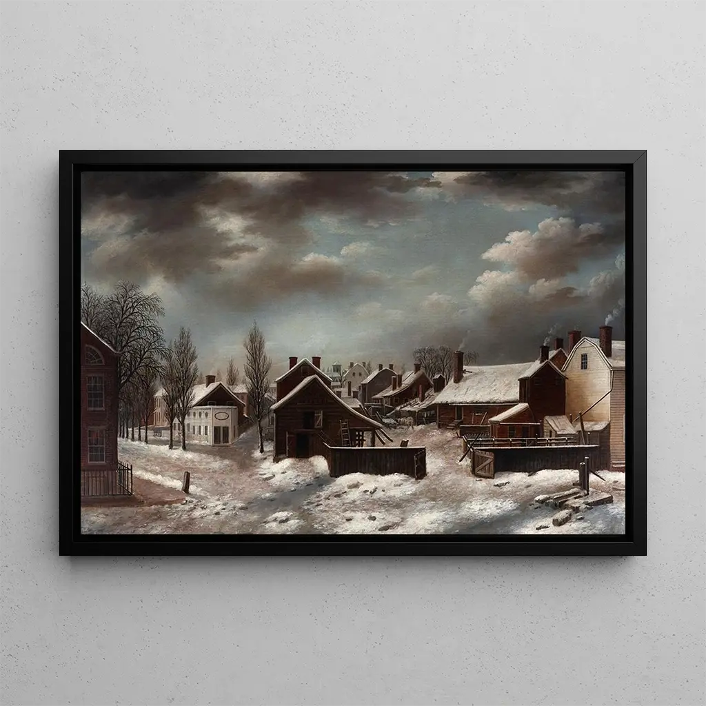 Sneeuwlandschap in Brooklyn: een harmonie tussen natuur en stedelijkheid De kunstdruk van Sneeuwlandschap in Brooklyn roept een rustige en melancholische sfeer op, waar de sneeuw voorzichtig de daken van huizen en de bomen bedekt. De koele tinten blauw en wit mengen zich met de warme accenten van de binnenverlichting, wat een opvallend contrast creëert. De olieverftechniek op doek stelt Francis Guy in staat om de textuur van de sneeuw en de zachtheid van het winterlicht vast te leggen. Het werk nodigt de kijker uit om zich onder te dompelen in dit rustige landschap en de rustgevende stilte van een winter in New York te ervaren. Francis Guy: een getuige van het dagelijks leven in de 19e eeuw Francis Guy, actief aan het begin van de 19e eeuw, is een Amerikaanse kunstenaar wiens werk zich richt op de weergave van het dagelijks leven en de landschappen van New York. Geïnspireerd door de romantische beweging, probeert hij de essentie van zijn tijd vast te leggen door middel van zijn werken. Guy is vooral bekend om zijn stedelijke landschappen, die getuigen van de evolutie van de stad en haar omgeving. Zijn vermogen om alledaagse scènes te immortalizeren met een poëtische toets maakt hem tot een belangrijke kunstenaar in de geschiedenis van de Amerikaanse kunst. Een decoratief stuk met vele voordelen De kunstdruk van Sneeuwlandschap in Brooklyn is een ideaal decoratief stuk om een vleugje sereniteit aan uw interieur toe te voegen. Of het nu in een woonkamer, kantoor of slaapkamer is, dit doek zal u verleiden met zijn tijdloze charme en hoge afdrukkwaliteit. De trouw in kleuren en details laat u de magie van de winter in Brooklyn voelen, terwijl het een artistieke dimensie aan uw inrichting toevoegt. Gun uzelf dit werk om uw leefruimte te verrijken en gesprekken over kunst en geschiedenis te stimuleren.