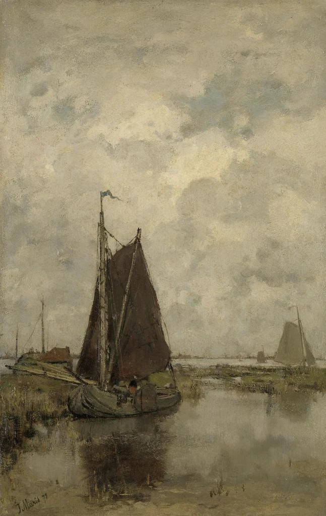 Jacob Maris, een iconische figuur van de Nederlandse impressionistische beweging, wist traditie en moderniteit te combineren in zijn werk. Geboren in 1837 in Den Haag, werd hij beïnvloed door de grote meesters van het landschap, terwijl hij een unieke stijl ontwikkelde die zich onderscheidt door zijn gevoeligheid voor licht en atmosfeer. Maris schilderde vaak maritieme scènes, wat getuigt van zijn liefde voor de zee en zijn omgeving. Zijn werk markeerde een periode waarin de Nederlandse kunst probeerde zich te bevrijden van academische conventies, en hij speelde een sleutelrol in de evolutie van het landschapsschilderkunst in de 19e eeuw.