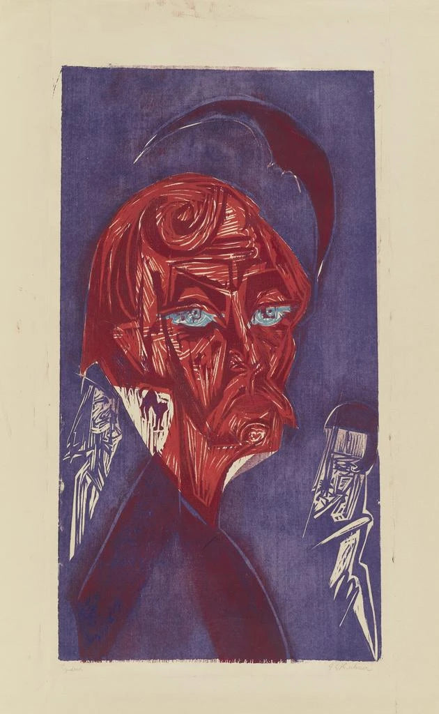 Né en 1880, Ernst Ludwig Kirchner est l’un des fondateurs du mouvement expressionniste en Allemagne. Influencé par le fauvisme et l’art primitif, il développe un style unique qui rompt avec les conventions académiques de son époque. Kirchner, membre du groupe Die Brücke, cherche à exprimer des sentiments profonds et des réalités sociales à travers ses œuvres. Son travail, marqué par une forte charge émotionnelle, reflète les tensions et les bouleversements de la société allemande au début du XXe siècle. Le portrait de Karl Stirner s’inscrit parfaitement dans cette démarche, témoignant de l’importance de l’individu dans un monde en mutation.