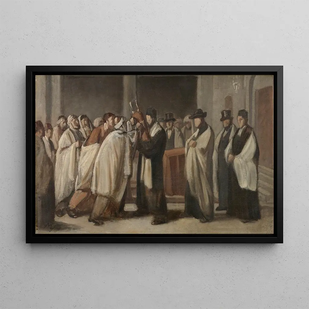 Édouard Moyse, actief in de 19e eeuw, is een Franse kunstschilder van Joodse afkomst, bekend om zijn werken die het Joodse leven en de tradities belichten. Geïnspireerd door het romantisme, probeert hij de ziel van zijn onderwerpen vast te leggen door middel van composities vol emotie. Zijn carrière wordt gekenmerkt door een betrokkenheid bij het authentiek weergeven van de Joodse cultuur, wat bijdraagt aan een beter begrip en waardering van deze gemeenschap. Zijn werken, vaak doordrenkt met nostalgie, getuigen van een tijd waarin traditie en moderniteit naast elkaar bestonden.