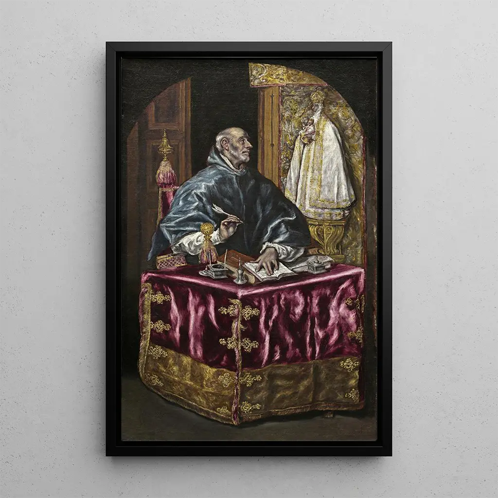 Saint Ildefonse : een viering van geloof en devotie In Saint Ildefonse biedt El Greco een indrukwekkende voorstelling van de heilige, omhuld door een goddelijke lichtstraal die uit hem lijkt te stralen. De warme, gouden kleuren van het doek creëren een sfeer van sereniteit en eerbied, terwijl de vloeiende plooien en minutieuze details van de kleding een tastbare dimensie aan het kunstwerk toevoegen. De houding van de heilige, met omhoog geheven handen in gebedsgebaar, roept een diepe spirituele verbinding op en nodigt de kijker uit om dit moment van mystieke extase te delen. De compositie straalt een emotionele kracht uit die het eenvoudige portret overstijgt en een ware ode aan het geloof wordt. El Greco : een pionier van de spirituele kunst El Greco, een iconische figuur van de Spaanse renaissance, wist traditie en innovatie te combineren in zijn kunstwerken. Oorspronkelijk afkomstig uit Kreta, werd hij beïnvloed door de Byzantijnse kunst voordat hij zich in Spanje vestigde, waar hij zijn eigen unieke stijl ontwikkelde. Saint Ildefonse, voltooid aan het einde van de 16e eeuw, getuigt van zijn interesse in religieuze en mystieke thema's. De kunstenaar wist de essentie van spiritualiteit vast te leggen door middel van langgerekte figuren en een gedurfde toepassing van licht. Zijn nalatenschap blijft voortleven, inspireert generaties kunstenaars en maakt hem tot een onmisbare figuur in de kunstgeschiedenis. Een decoratieve kunstdruk met vele voordelen De kunstdruk van Saint Ildefonse is een perfecte keuze voor wie zijn interieur wil verrijken met een werk vol betekenis en emotie. Of het nu gaat om een meditatieruimte, een kantoor of een woonkamer, dit schilderij brengt een vleugje spiritualiteit en elegantie. De kwaliteit van de kunstdruk garandeert een opmerkelijke fideliteit aan de details van het originele werk, waardoor de vakmanschap van El Greco volledig tot zijn recht komt. Met zijn esthetische aantrekkingskracht en vermogen om tot nadenken te stemmen, wordt dit doek een waardevol decoratief element dat uw ruimte transformeert in een plek van rust en inspiratie.