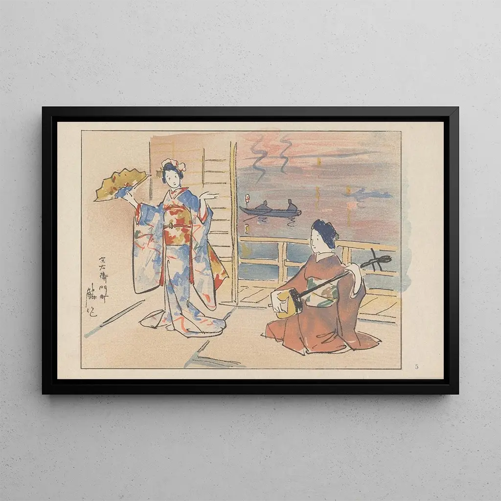 Soemoncho, de wijk vol plezier : een onderdompeling in het Japanse stadsleven De kunstdruk van Soemoncho, de wijk vol plezier, door Akamatsu Rinsaku, brengt ons in een levendige en bruisende wereld. Dit doek, rijk aan kleuren en details, vangt de essentie van het nachtleven in Osaka aan het begin van de 20e eeuw. De warme en heldere tinten, gemengd met delicate schaduwen, creëren een sfeer die zowel feestelijk als nostalgisch is. De personages, gekleed in traditionele kimono's, mengen zich in een dans van leven en beweging, terwijl de lantaarns de scène verlichten en een vleugje magie toevoegen aan dit boeiende schilderij. Akamatsu Rinsaku: een getuige van het Meiji-tijdperk Akamatsu Rinsaku, Japanse kunstenaar uit het begin van het Meiji-tijdperk, staat bekend om zijn vermogen om traditie en moderniteit te combineren. Geïnspireerd door westerse kunststromingen, terwijl hij geworteld bleef in zijn culturele erfgoed, wist hij de transformatie van de Japanse samenleving vast te leggen. Zijn carrière, gekenmerkt door een verkenning van stedelijke thema's en scènes uit het dagelijks leven, heeft hem tot een iconisch figuur van zijn tijd gemaakt. Rinsaku wist vluchtige momenten te vereeuwigen, zoals die in Soemoncho, die getuigen van de evolutie van gewoonten en levensstijlen in Japan. Een decoratief stuk met vele voordelen De kunstdruk van Soemoncho, de wijk vol plezier, is een ideaal decoratief stuk voor diverse ruimtes zoals de woonkamer, kantoor of slaapkamer. De kwaliteit van de afdruk en de trouw aan de originele details maken het een aantrekkelijke keuze voor liefhebbers van kunst en Japanse cultuur. Door dit schilderij in uw inrichting te integreren, brengt u een vleugje exotisme en elegantie in uw interieur. De esthetische aantrekkingskracht en het vermogen om gesprekken op gang te brengen, maken het een centraal element in uw decoratie, terwijl u kunt genieten van een kunstwerk vol geschiedenis en charme.