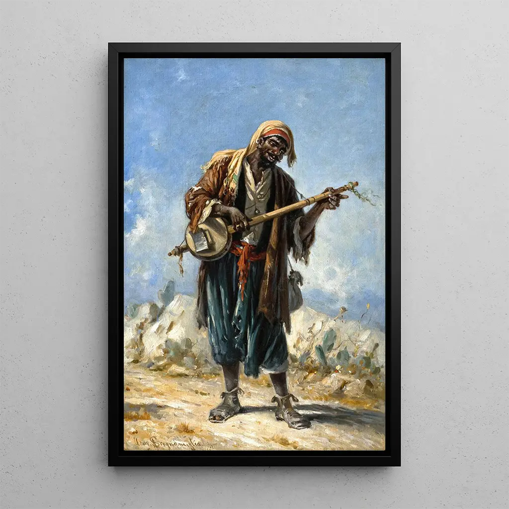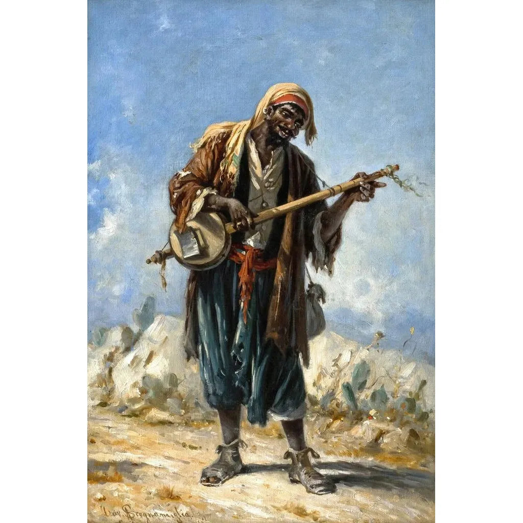 La kunstdruk du Joueur de goge près du Caire, Égypte, plonge le spectateur dans une scène vivante et colorée. Les couleurs éclatantes des vêtements et l'énergie palpable du joueur créent une atmosphère festive qui évoque les traditions musicales égyptiennes. La technique de peinture utilisée met en valeur les textures des tissus et les expressions des personnages, rendant la scène presque tangible. Chaque détail, du mouvement du joueur à l'interaction avec son environnement, raconte une histoire de culture et de passion. Ce tableau est une véritable célébration de la musique et de la vie quotidienne en Égypte, capturant l'essence d'un moment fugace.