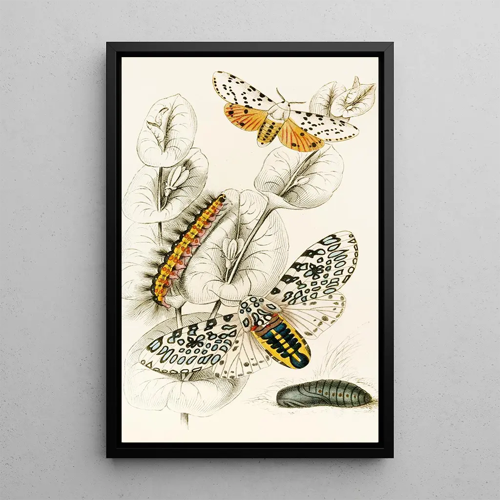 Spilosoma aerea Arctia oculatissima : een uitbarsting van wilde natuur De kunstdruk van Spilosoma aerea Arctia oculatissima dompelt ons onder in een levendige wereld waar de natuur zich krachtig uitdrukt. Dit schilderij, rijk aan kleuren, benadrukt nuances van geel en zwart die de fascinerende schoonheid van deze vlinder oproepen. De techniek van de kunstenaar, die precisie en delicatessen combineert, creëert een sfeer die zowel levendig als contemplatief is. De minutieuze details van de vleugels, bijna doorschijnend, vangen het licht op een manier die lijkt de werken te laten vibreren. Elke penseelstreek vertelt een verhaal, dat van een vergankelijke schepsel, symbool van metamorfose en de vluchtige schoonheid van de natuur. James Duncan : een pionier in artistieke entomologie James Duncan, naturalist en kunstenaar uit de 19e eeuw, wist kunst en wetenschap te verbinden door zijn werken. Geïnspireerd door de vooruitgang in de entomologie, wijdde hij zijn carrière aan het nauwkeurig weergeven van insecten. Zijn illustraties zijn niet alleen kunstwerken, maar ook waardevolle documenten voor de studie van soorten. In een tijd waarin de natuur nog grotendeels onontdekt was, heeft Duncan bijgedragen aan het bewustzijn over biodiversiteit. Zijn stijl, die zowel realistisch als poëtisch is, markeerde zijn tijd en maakte hem tot een iconische figuur in het domein van de natuurlijke kunst. Een decoratieve aankoop met vele voordelen Kiezen voor een kunstdruk van Spilosoma aerea Arctia oculatissima betekent kiezen voor een decoratief stuk dat elk interieur kan verrijken. Of het nu in een woonkamer, kantoor of slaapkamer is, dit schilderij brengt een vleugje frisheid en elegantie. De kwaliteit van de kunstdruk garandeert een trouwheid aan de kleuren en details van het originele werk, zodat u dagelijks kunt genieten van zijn esthetische aantrekkingskracht. Door deze doek in uw inrichting te integreren, nodigt u de natuur uit om zich uit te drukken in uw leefruimte, terwijl u het talent van een kunstenaar viert die de schoonheid van de levende wereld heeft weten vast te leggen.