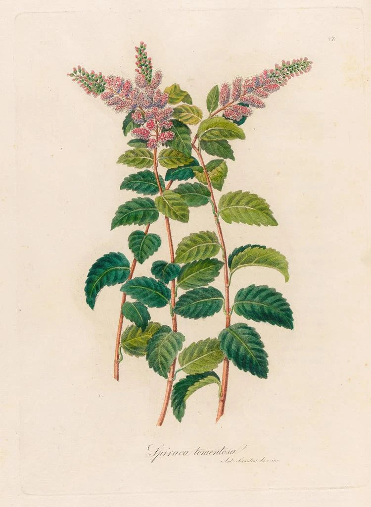 De kunstdruk van Spirée tomenteuse, een werk van Gaetano Savi, onderscheidt zich door haar glans en levendigheid. De pastelkleuren, variërend van roze tot wit, mengen harmonieus, waardoor een zachte en rustgevende sfeer ontstaat. De techniek van Savi, die een nauwkeurige observatie combineert met een scherp artistiek gevoel, brengt deze plant tot leven en eert haar natuurlijke schoonheid. Elk detail, van delicate bladeren tot bloeiende bloemen, wordt zorgvuldig weergegeven, wat een volledige onderdompeling in de wereld van de planten mogelijk maakt. Dit doek nodigt uit tot contemplatie en verwondering over de rijkdom van de natuur.