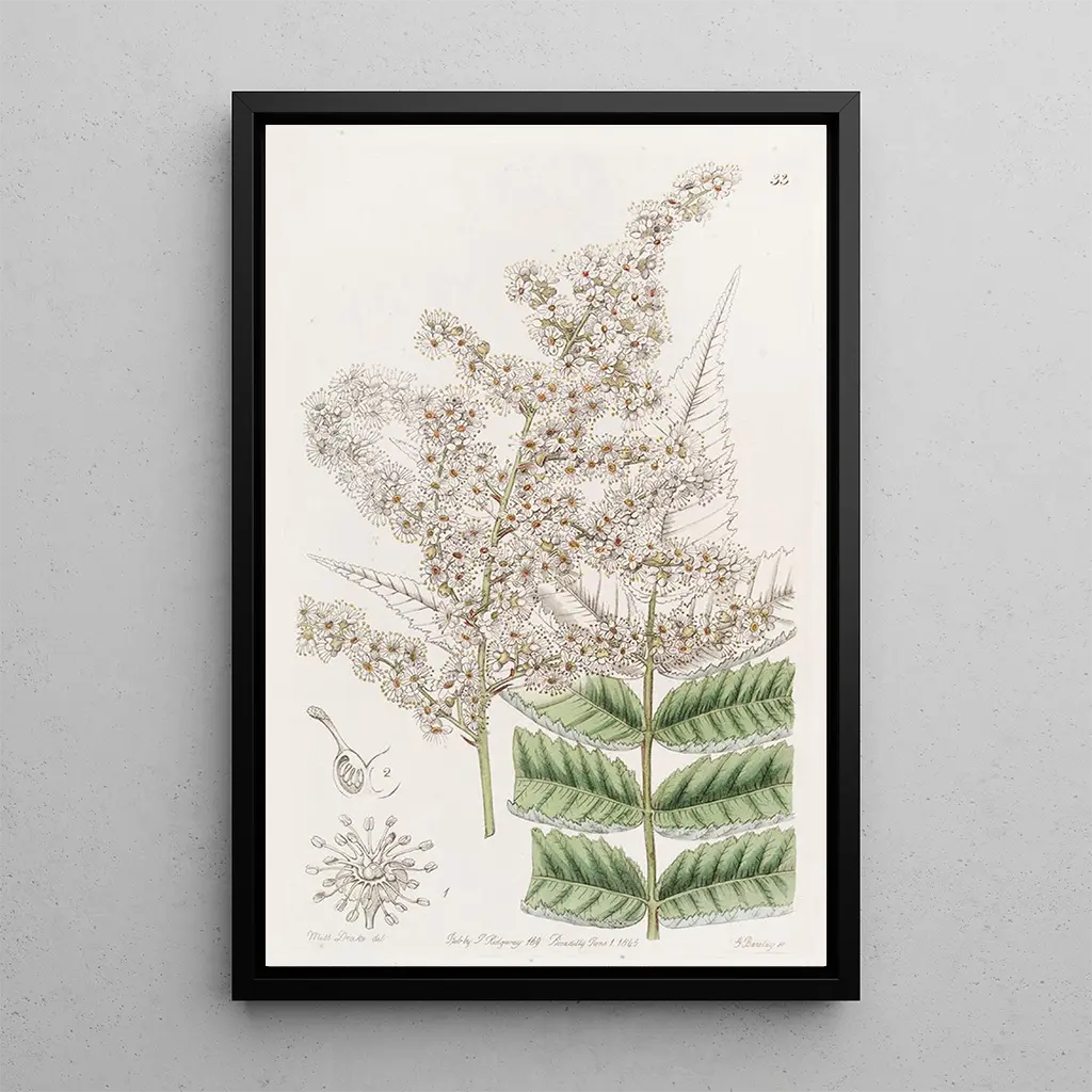 La kunstdruk de la Spirée du Dr Lindley, œuvre de Sydenham Edwards, est une véritable ode à la beauté des fleurs. Les nuances pastel des pétales, allant du blanc pur au rose tendre, se mêlent harmonieusement à des feuilles vertes délicates. Cette toile, réalisée avec une technique d’aquarelle raffinée, dégage une atmosphère douce et apaisante, évoquant les jardins luxuriants de l’époque victorienne. Chaque détail est soigneusement rendu, permettant au spectateur d'apprécier la finesse de la nature à travers le prisme de l'art.