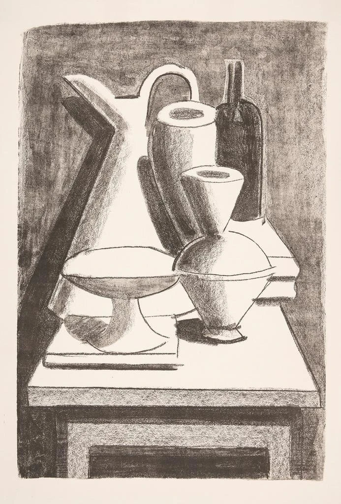 Nature morte avec cruche, bouteille, etc. : une harmonie des formes et des couleurs