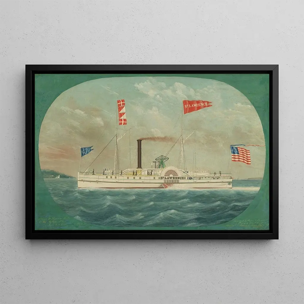 Vapeur Saint-Laurent : een ode aan de majestueuze rivier Het doek "Vapeur Saint-Laurent" van James Bard vangt de essentie van de rivier de Saint-Laurent, met zijn woelige wateren en groene landschappen. De tinten blauw en groen verweven zich, waardoor een sfeer ontstaat die zowel dynamisch als rustgevend is. De olietechniek op doek stelt Bard in staat te spelen met het licht, waardoor de stoom die uit de stoomboot ontsnapt tot leven komt, symbool van het industriële tijdperk. Dit schilderij nodigt uit tot een visuele reis, waarbij je bijna het geluid van de golven en het fluiten van de stoomboot kunt horen, terwijl je de natuurlijke schoonheid eromheen bewondert. James Bard : een getuige van de gouden maritieme tijd James Bard, actief in de 19e eeuw, wordt erkend om zijn maritieme voorstellingen die het belang van vaarwegen in Amerika illustreren. Geïnspireerd door de romantische beweging, wist hij de grootsheid van landschappen en de kracht van stoomschepen die de rivieren doorkruisten, vast te leggen. Zijn werken, vaak besteld door rederijen, weerspiegelen niet alleen zijn talent, maar ook de economische bloei van zijn tijd. Bard heeft zo bijgedragen aan het vereeuwigen van een periode waarin riviertransport centraal stond in het dagelijks leven en de handel. Een decoratief stuk met vele voordelen De kunstdruk van "Vapeur Saint-Laurent" is een ideaal decoratief stuk om uw woonkamer, kantoor of slaapkamer te verrijken. De kwaliteit van de afdruk en de trouw aan de originele kleuren maken het een aantrekkelijke keuze voor kunstliefhebbers. Door dit schilderij in uw interieur te integreren, brengt u een vleugje elegantie en nostalgie, terwijl u het maritieme erfgoed viert. Dit schilderij, met zijn levendige sfeer, zal uw gasten aanspreken en een warme en gastvrije sfeer creëren.