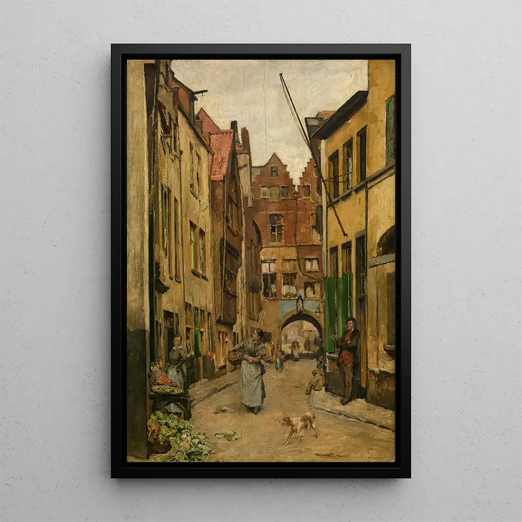 Piet Verhaert, Belgische kunstenaar actief in het begin van de 20e eeuw, wist de geest van zijn tijd vast te leggen door zijn werken. Geïnspireerd door de impressionistische beweging ontwikkelde hij een unieke stijl die de nadruk legt op licht en kleur. "Rue Palingbrug" getuigt van zijn vaardigheid om scènes uit het dagelijks leven weer te geven, terwijl hij moderne elementen integreert. Verhaert heeft vaak de thema's van urbaniteit en menselijke interactie onderzocht, wat van dit werk een waardevolle weerspiegeling maakt van de samenleving van zijn tijd, terwijl het tijdloos blijft in zijn aantrekkingskracht.