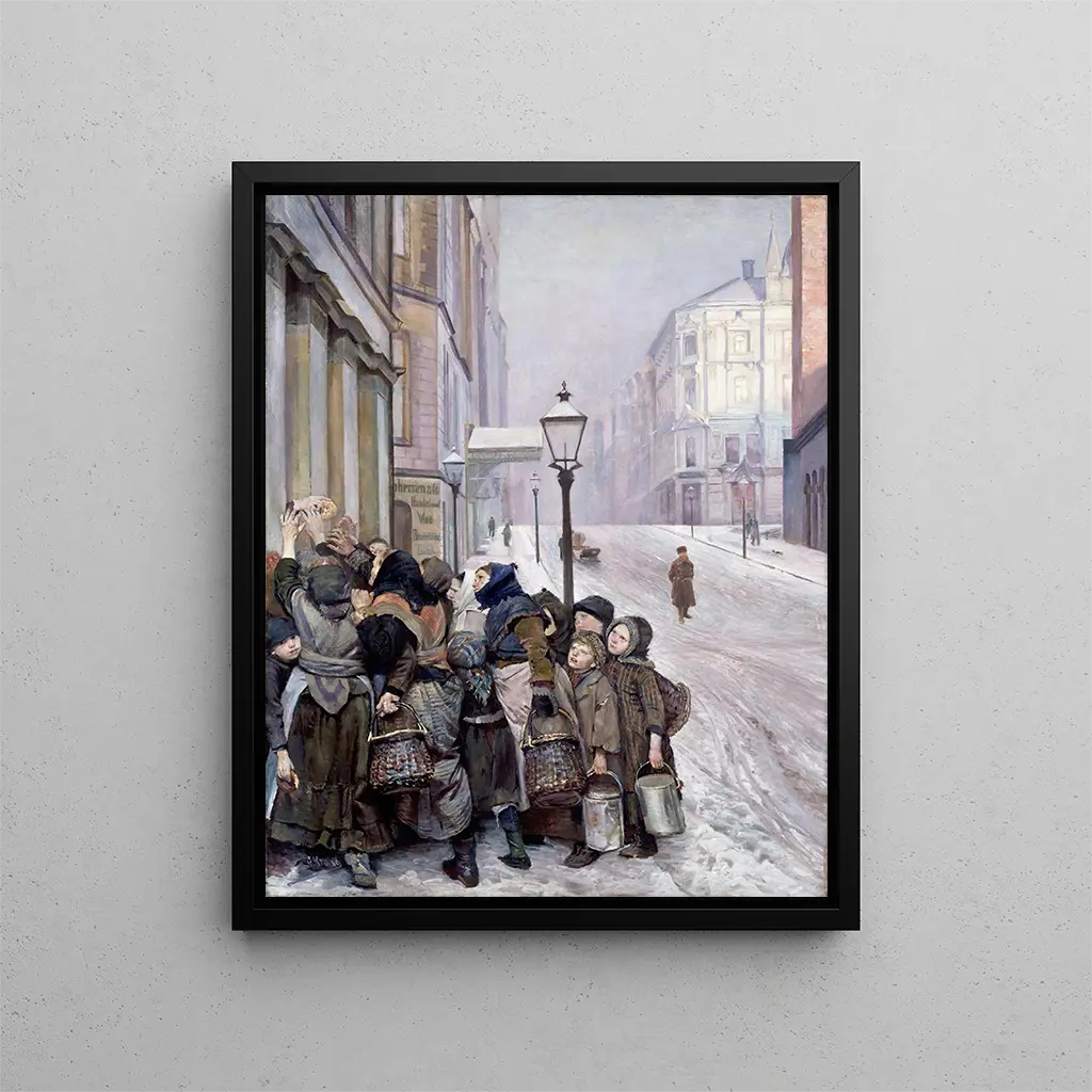 Kunstdruk Lutte pour la vie - Christian Krohg – Inleiding boeiend In het bruisende universum van de kunst slagen sommige werken erin de tijd te overstijgen en de essentie van de mensheid vast te leggen. "Lutte pour la vie" van Christian Krohg is een van deze meesterwerken. Geschilderd aan het einde van de 19e eeuw, roept dit iconische werk de innerlijke en uiterlijke strijd van de mens op tegen de uitdagingen van het leven. Met een indrukwekkende emotionele diepgang nodigt het de kijker uit om na te denken over de menselijke conditie, terwijl het een indringend inzicht biedt in de sociale realiteiten van die tijd. Bij het bekijken van dit stuk wordt men meegenomen naar een wereld waar pijn en hoop verweven zijn, en de tragische schoonheid van het bestaan onthullen. Stijl en uniekheid van het werk De stijl van Krohg onderscheidt zich door zijn vermogen om realisme en expressionisme te combineren, waardoor een sfeer ontstaat die zowel tastbaar als diep emotioneel is. "Lutte pour la vie" wordt gekenmerkt door rijke kleuren en dynamische vormen die de spanning en strijd van de afgebeelde personages uitdrukken. De compositie, zorgvuldig georkestreerd, leidt de blik van de kijker door een scène waarin lijden en vastberadenheid naast elkaar bestaan. De gezichten, getekend door vermoeidheid en angst, getuigen van een menselijkheid die zowel kwetsbaar als veerkrachtig is. Elk detail is zorgvuldig doordacht, elke penseelstreek vertelt een verhaal, waardoor dit werk een waar getuigenis is van de sociale strijd van zijn tijd, en nog steeds resoneert. De kunstenaar en zijn invloed Christian Krohg is niet alleen een schilder, maar ook een schrijver en kunstcriticus, betrokken bij de sociale debatten van zijn tijd. Zijn werk wordt diep beïnvloed door zijn interesse in de levensomstandigheden van de arbeidersklasse en sociale onrechtvaardigheden. Als lid van de realistische beweging probeerde hij het dagelijks leven te weergeven met brute eerlijkheid, zonder versiering. Zijn invloed reikt veel verder dan de grenzen van Noorwegen en raakt vele hedendaagse kunstenaars die in hem een voorloper van de moderne realisme zien. Via "Lutte pour la vie" biedt Krohg een reflectie op de eeuwige strijd van de mensheid, en moedigt hij ons aan om te observeren en te vragen.