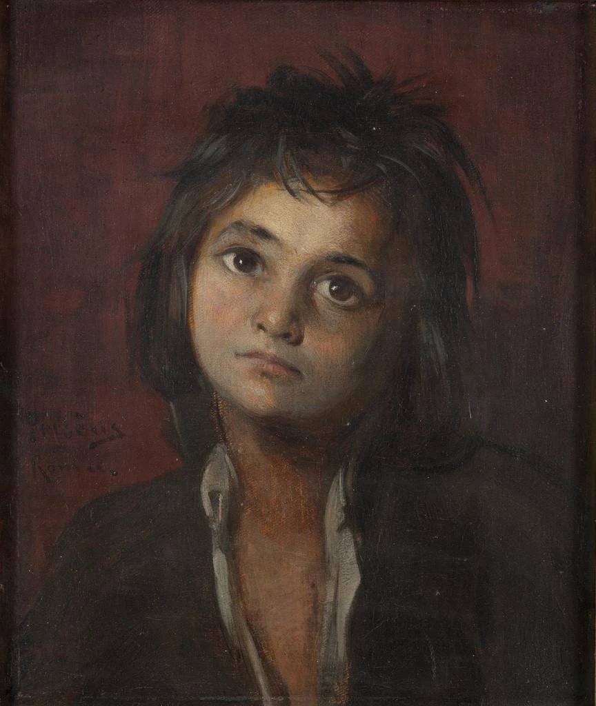Het werk van Edvard Persus onderscheidt zich door zijn technische finesse en zijn gevoelige benadering van de onderwerpen die hij kiest te representeren. In "Studie van een Romeinse jongen" slaagt de kunstenaar erin de essentie van de jeugd vast te leggen, door middel van delicate trekken en een subtiele kleurenpalet. De jongen, bevroren in een moment van contemplatie, lijkt zowel aanwezig als afstandelijk, alsof hij de stille getuige is van een voortdurend evoluerende wereld. Het licht speelt een essentiële rol in de compositie, benadrukt de contouren van het gezicht en brengt een emotionele diepte aan het geheel. Persus, met zijn realistische aanpak, biedt ons een zowel intieme als universele visie, die ons aanzet tot nadenken over onze eigen ervaring van jeugd en schoonheid.
