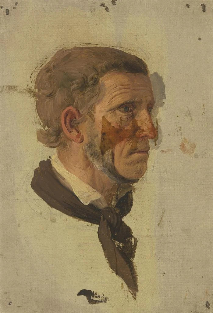 Schilderij Studie van een boerenhoofd in profiel - Jakob Becker | Kunstdruk