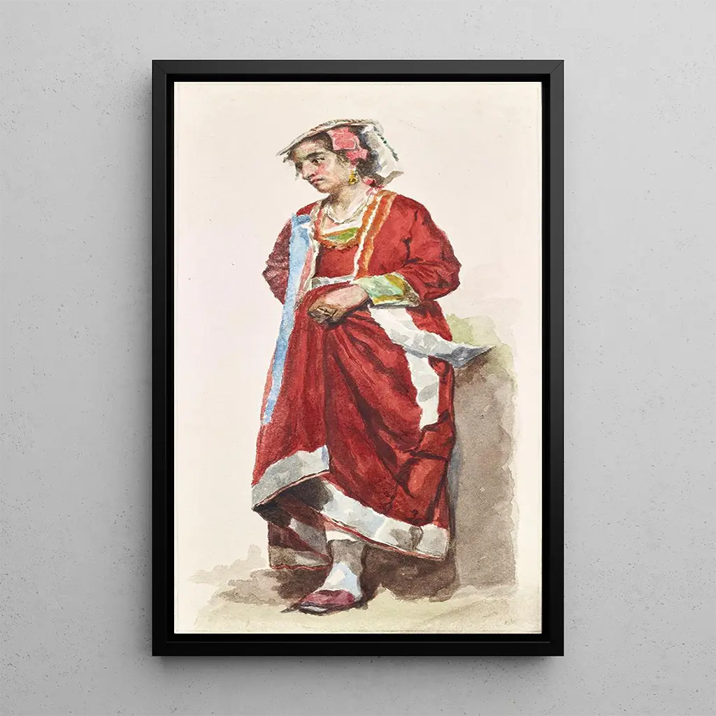 Studie van vrouwelijke kostuum Midden-Italië: een duik in de mode van weleer De kunstdruk "Studie van vrouwelijke kostuum Midden-Italië" van Albin Stein biedt een ware venster op het verleden, waarin de essentie van de traditionele kleding uit deze regio wordt vastgelegd. De minutieuze details van de stoffen, de rijke kleuren en de delicate patronen roepen een sfeer van verfijning en nostalgie op. De techniek van de kunstenaar, die aquarel en tekening combineert, maakt het mogelijk om de vloeiendheid van de plooien en de textuur van de stoffen met opmerkelijke precisie weer te geven. Elk element van de compositie lijkt een verhaal te vertellen, en nodigt de kijker uit om zich het dagelijks leven van de vrouwen uit die tijd voor te stellen. Albin Stein: een getuige van de historische mode Albin Stein, kunstenaar uit de 19e eeuw, staat bekend om zijn studies van kostuums en zijn weergaven van mode door de eeuwen heen. Geïnspireerd door het romantisme en de groeiende interesse in etnografie, wist hij de essentie van de traditionele Europese kleding vast te leggen. Zijn werken, vaak gemaakt tijdens reizen, getuigen van een tijd waarin mode een afspiegeling was van culturele identiteit. Stein speelde een essentiële rol in het behoud van deze kledingtradities en bood toekomstige generaties een waardevol inzicht in de evolutie van stijl en textielkunst. Een decoratief kunstdruk met vele voordelen De kunstdruk van de kunstdruk "Studie van vrouwelijke kostuum Midden-Italië" is een ideaal decoratief stuk om je interieur te verrijken, of het nu in een woonkamer, kantoor of slaapkamer is. De kwaliteit van de afdruk en de trouw aan de originele details maken het een aantrekkelijke keuze voor kunst- en modeliefhebbers. Door deze afbeelding in je inrichting te integreren, voeg je een vleugje elegantie en geschiedenis toe aan je ruimte, terwijl je gesprekken over kunst en cultuur stimuleert. Deze doek is veel meer dan een eenvoudige decoratie; het is een uitnodiging om het verleden te verkennen en de schoonheid van traditionele kostuums te waarderen.