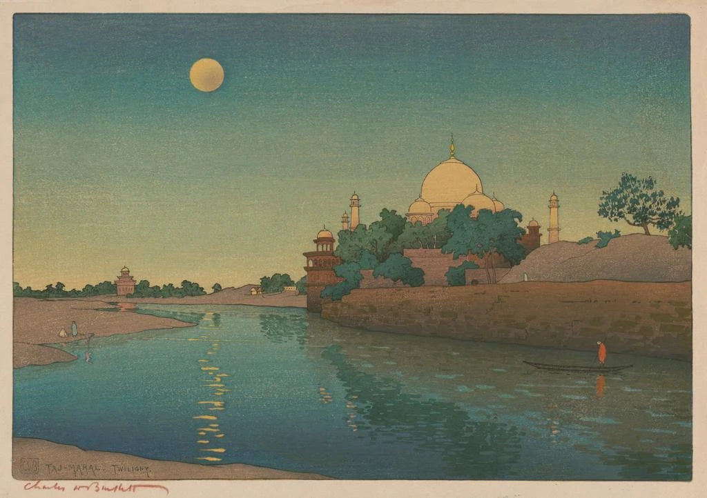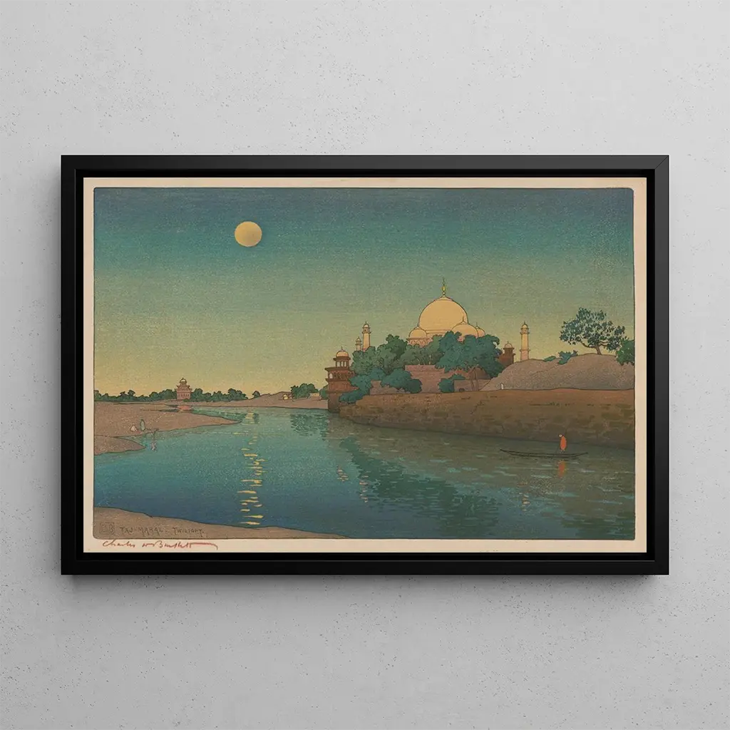 Taj Mahal bij schemerlicht: een ode aan de eeuwige liefde De afbeelding "Taj Mahal bij schemerlicht" van Charles William Bartlett vangt de magie van een iconisch monument bij valavond. De warme tinten van de lucht, die oranje en violet mengen, worden weerspiegeld op het wateroppervlak, waardoor een romantische en mystieke sfeer ontstaat. De compositie benadrukt de majesteit van de Taj Mahal, met zijn koepels en minaretten die afsteken tegen de heldere achtergrond. Bartletts techniek, die precisie en impressionisme combineert, brengt deze scène tot leven en nodigt de kijker uit om de schoonheid en sereniteit van deze historische plek te voelen. Charles William Bartlett: een reizende en visionaire kunstenaar Charles William Bartlett, actief in het begin van de 20e eeuw, staat bekend om zijn weergaven van exotische en historische landschappen. Geïnspireerd door zijn reizen in India, ontwikkelt hij een unieke stijl die realisme en impressionistische accenten combineert. Zijn werk getuigt van een fascinatie voor de architectuur en cultuur van India, terwijl hij elementen van de omringende natuur integreert. Bartlett heeft in staat geweest om iconische plaatsen vast te leggen, zoals de Taj Mahal, en ze een poëtische dimensie te geven. Zijn werk blijft een referentie in de oriëntalistische kunst, en illustreert het belang van de ontmoeting tussen culturen in de kunst. Een decoratief stuk met vele voordelen De kunstdruk van "Taj Mahal bij schemerlicht" is een decoratief stuk dat uw interieur zal verfraaien. Of het nu in een woonkamer, kantoor of slaapkamer is, dit doek brengt een vleugje exotisme en romantiek. De kwaliteit van de kunstdruk garandeert een trouwheid aan de kleuren en details van het originele werk, waardoor u dagelijks kunt genieten van de esthetische aantrekkingskracht. Door voor dit werk te kiezen, geeft u uw ruimte een warme en inspirerende sfeer, terwijl u de tijdloze schoonheid van een van de meest beroemde monumenten ter wereld viert.