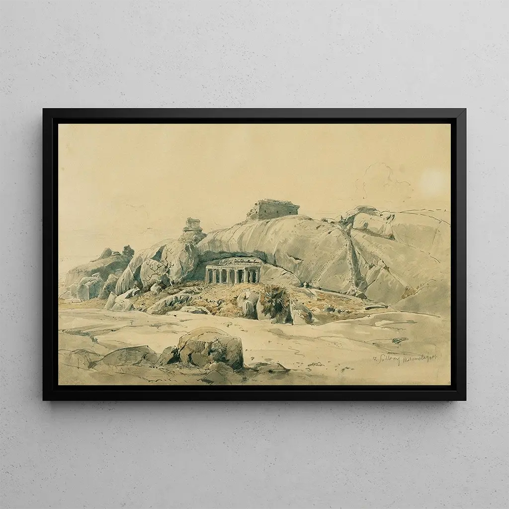 Tempel rots van Mamallapuram Mahamaleipur in India: een monument van spiritualiteit De kunstdruk van de "Tempel rots van Mamallapuram Mahamaleipur" roept de majesteit en spiritualiteit op van een iconische locatie in India. Uitgehouwen in de rots, getuigt deze tempel van verfijnde architectuur en uitzonderlijk vakmanschap. De minutieuze details van de sculpturen, die godheden en mythologische scènes voorstellen, dompelen de kijker onder in een heilig universum. Het natuurlijke licht dat de stenen streelt, versterkt de schoonheid van dit kunstwerk en creëert een mystieke en tijdloze sfeer, ideaal voor meditatie en reflectie. Joseph Selleny: een ontdekkingsreiziger van architectonische wonderen Joseph Selleny, een kunstenaar uit de 19e eeuw, wist de essentie van historische monumenten vast te leggen door middel van zijn kunstdrukken. Zijn interesse in architectuur en exotische landschappen leidde hem tot het maken van kunstdrukken van beroemde sites, waaronder de tempel van Mamallapuram. Selleny, beïnvloed door de romantische beweging, probeerde de grootsheid en schoonheid van oude culturen uit te drukken. Zijn werk is een waardevol getuigenis van de Indiase architectuur en stelt toekomstige generaties in staat deze wereldpatrimoniumschatten te waarderen. Een decoratief stuk met vele voordelen De kunstdruk van de "Tempel rots van Mamallapuram Mahamaleipur" is een decoratief item dat een vleugje exotisme en spiritualiteit aan uw interieur toevoegt. Of het nu in een woonkamer, kantoor of slaapkamer is, dit doek trekt de aandacht en wekt verwondering op. De reproduktiesterkte garandeert een nauwkeurigheid in de architectonische details en texturen, terwijl het een artistieke dimensie aan uw decoratie toevoegt. Door dit kunstwerk in uw ruimte te integreren, creëert u een inspirerende en rustgevende sfeer, ideaal voor contemplatie en sereniteit.
