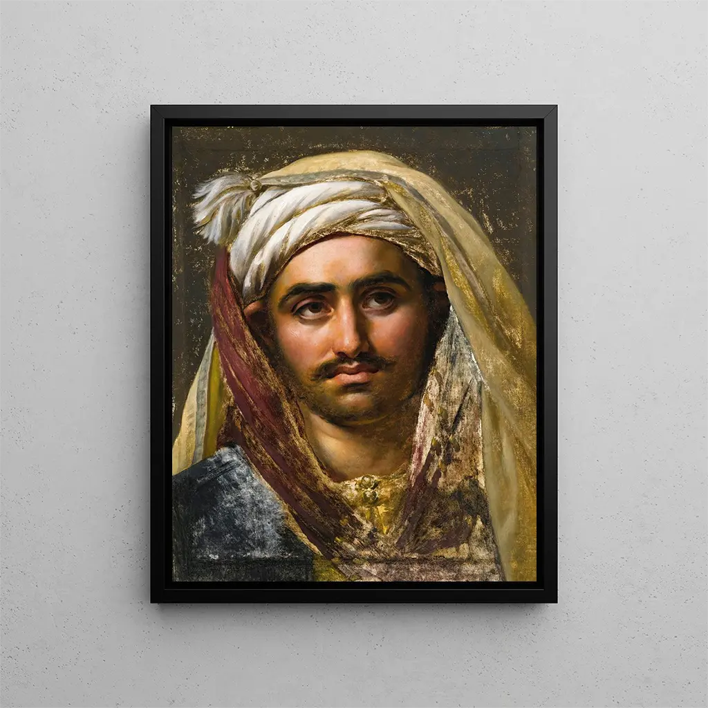 Reproductie Hoofd van een jonge Turk - Anne-Louis Girodet-Trioson – Boeiende introductie In het artistieke landschap van het begin van de 19e eeuw onderscheidt Anne-Louis Girodet-Trioson zich door zijn vermogen om de essentie van de onderwerpen die hij schildert vast te leggen. Zijn beroemde werk, "Hoofd van een jonge Turk", getuigt van een esthetisch gevoel en een psychologische diepgang die verder gaan dan een eenvoudig portret. Door deze voorstelling nodigt Girodet de kijker uit om onder te dompelen in een wereld waar schoonheid en exotisme samenkomen, en de nuances van een rijke en complexe cultuur onthullen. De manier waarop hij de gelaatstrekken en de details van de kleding behandelt, roept een fascinatie op voor het Oosten, terwijl hij elementen van de Franse klassieke traditie integreert. Dit werk, zowel intiem als universeel, boeit door zijn expressiviteit en technische beheersing. Stijl en uniekheid van het werk De stijl van Girodet wordt gekenmerkt door een scherp gevoel voor kleur en licht, dat zijn portretten een bijna dromerige sfeer geeft. In "Hoofd van een jonge Turk" zorgen de warme tinten en delicate schaduwen voor een lichtspel dat de fijne trekken van de jonge man benadrukt. De kunstenaar gebruikt subtiele nuances om de textuur van de huid te suggereren, terwijl de reflecties in de ogen lijken te vibreren met een innerlijk leven. Dit werk onderscheidt zich ook door zijn zorgvuldig uitgebalanceerde compositie, waarbij het gezicht centraal staat en onmiddellijk de aandacht trekt. De details van de kleding, versierd met oosterse motieven, voegen een extra dimensie toe en benadrukken de harmonie tussen het individu en zijn culturele erfgoed. Girodet slaagt er zo in een portret te creëren dat niet alleen een voorstelling is, maar een ware verkenning van identiteit. De kunstenaar en zijn invloed Anne-Louis Girodet-Trioson, leerling van Jacques-Louis David, ontwikkelde een persoonlijke stijl die neoclassicisme en het opkomende romantisme combineert. Zijn carrière wordt gekenmerkt door een reeks emblematische werken die getuigen van zijn uitzonderlijk talent en artistieke innovatie. Girodet werd beïnvloed door de idealen van de Franse Revolutie, maar ook door wetenschappelijke ontdekkingen en culturele uitwisselingen van zijn tijd. Zijn benadering van het portret, die verder gaat dan de eenvoudige fysieke voorstelling, heeft de weg geëffend voor vele latere kunstenaars. Door exotische elementen te integreren en
