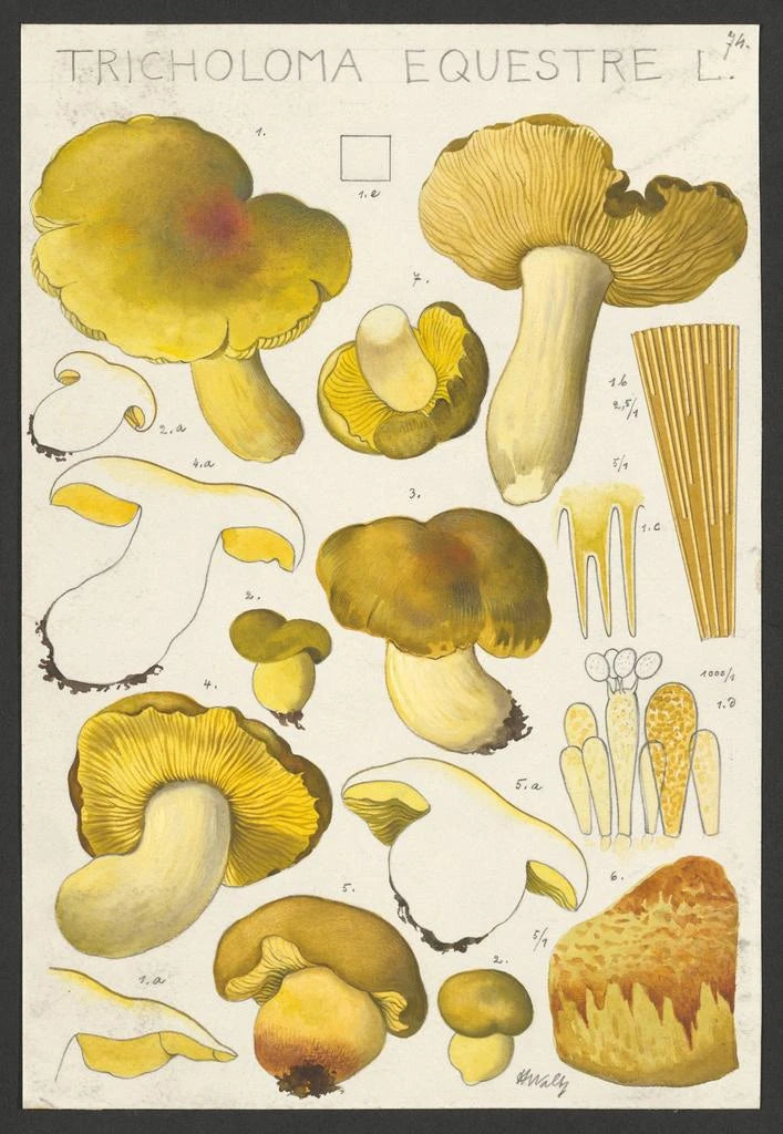Hans Baldung, actief in het begin van de 16e eeuw, wordt erkend als een van de belangrijkste kunstenaars van de Duitse renaissance. Opgeleid bij Albrecht Dürer, ontwikkelde hij een onderscheidende stijl, gekenmerkt door een gedurfd gebruik van kleuren en een symbolische benadering van zijn onderwerpen. De Tricholoma equestre L illustreert perfect zijn interesse in de natuur en het mysterie dat deze omringt. Baldung verkende vaak thema's gerelateerd aan mythologie en spiritualiteit, waarbij hij fantastische elementen in zijn kunstwerken verwerkte. Zijn vermogen om de essentie van de natuur vast te leggen en er een symbolische dimensie aan toe te voegen, maakt hem tot een onmisbare kunstenaar van zijn tijd.