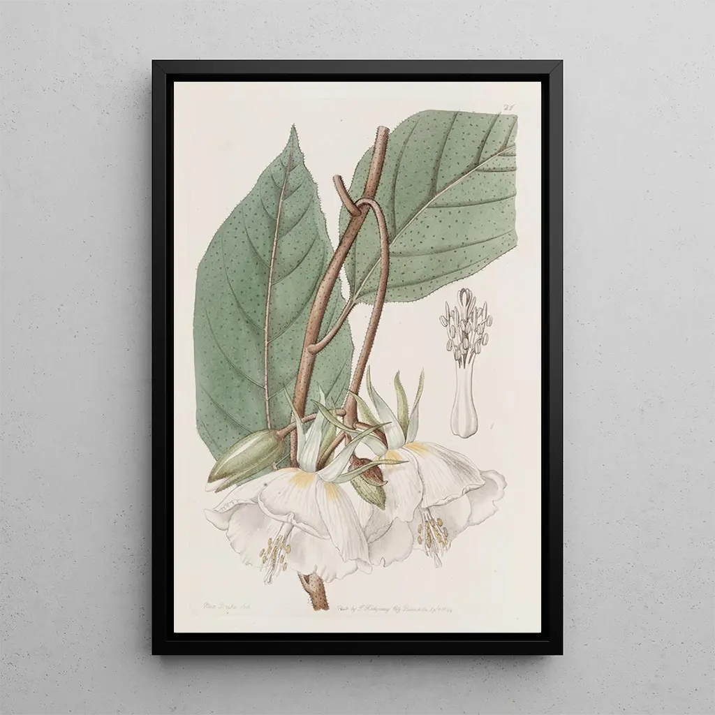 De kunstdruk van Trochetia à grandes fleurs dompelt ons onder in een weelderige wereld waar de natuur zich uitdrukt met éclat. De levendige tinten rood en groen mengen harmonieus, waardoor een levendige en warme sfeer ontstaat. De aquareltechniek, gebruikt door Sydenham Edwards, stelt ons in staat de delicatesse van de bloemblaadjes vast te leggen terwijl er een fascinerende diepte wordt geboden. Elk detail, van de nerven van de bladeren tot de schaduwen, getuigt van een oplettende blik op de schoonheid van planten. Dit kunstwerk nodigt uit tot contemplatie, en roept exotische landschappen en de rijkdom van biodiversiteit op.