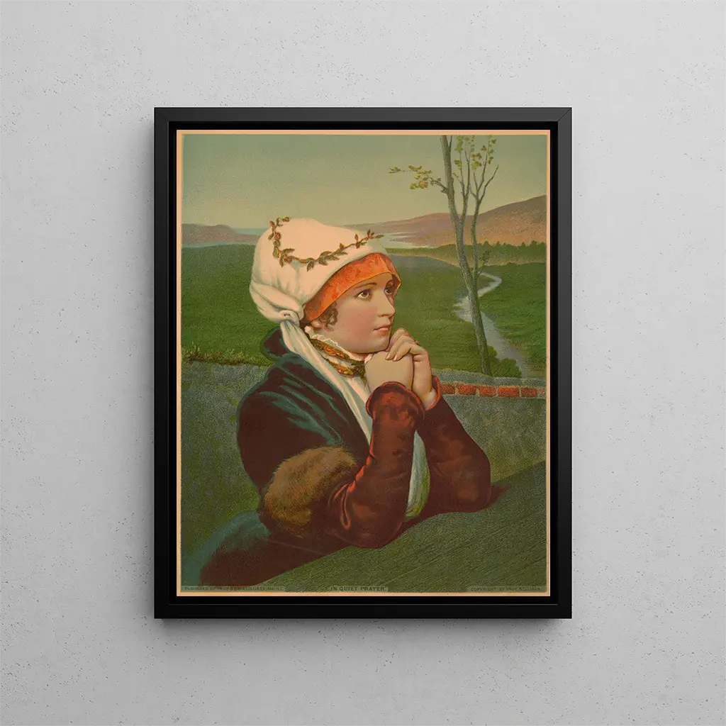 In In quiet prayer biedt True Co een compositie van grote subtiliteit, waarbij het licht de vormen streelt en de tinten met mate op elkaar reageren. Zachte tonen en subtiele contrasten creëren een contemplatieve sfeer, terwijl de toegepaste schildertechniek een beheersing van detail en atmosferisch vervagen suggereert. Het oog wordt aangetrokken door het clair-obscur spel dat de volumes tot leven brengt en uitnodigt tot een innerlijke pauze. Deze kunstdruk van In quiet prayer herstelt trouw de balans tussen emotie en sereniteit die in het origineel aanwezig is.
