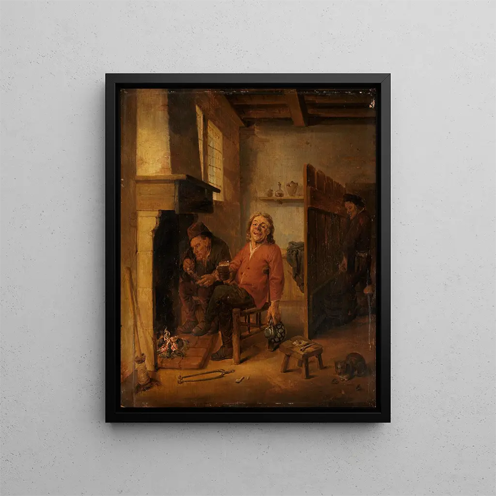 Kunstdruk Deux boeren drinkend bij het haardvuur - Abraham Diepraam – Boeiende introductie Het doek "Deux boeren drinkend bij het haardvuur" van Abraham Diepraam brengt de kijker in een intieme wereld, waar de warmte van een haard gezelschappen van iconische figuren uit het landelijke leven van de 17e eeuw samenbrengt. Dit schilderij, doordrenkt met realisme en gezelligheid, nodigt uit tot een zachte en rustgevende contemplatie. De warme tinten en het spel van licht creëren een omhullende sfeer, die de eenvoud en de rijkdom van menselijke uitwisselingen benadrukt, terwijl het artistieke vakmanschap van de maker in de verf wordt gezet. In dit werk slaagt Diepraam erin de essentie van het boerenleven vast te leggen, door een gewoon moment om te toveren tot een diep emotioneel en betekenisvol tafereel. Stijl en uniekheid van het werk De stijl van Diepraam wordt gekenmerkt door een verbluffend realisme, waarbij elk detail bijdraagt aan de authenticiteit van de scène. De figuren van de boeren, zachtaardig weergegeven, onthullen een nauwkeurige studie van gezichtsuitdrukkingen en houdingen, wat getuigt van een minutieuze observatie van de menselijke natuur. Het licht, dat in dit schilderij overal aanwezig is, speelt een fundamentele rol en creëert opvallende contrasten tussen schaduw en licht, waardoor een bijna sculpturale dimensie aan de personages wordt gegeven. De rijkdom aan texturen, van het ruwe hout van het meubilair tot de rustieke stoffen van de kleding, draagt eveneens bij aan het creëren van een warme en uitnodigende sfeer. Diepraam slaagt er zo in de warmte van het vuur voelbaar te maken, en nodigt de kijker uit om dit moment van gezelligheid en rust te delen. De kunstenaar en zijn invloed Abraham Diepraam, actief in de 17e eeuw, wordt vaak erkend om zijn vermogen om diverse invloeden te combineren in zijn werken. Oorspronkelijk uit Nederland, onderscheidt hij zich door zijn vaardigheid om scènes uit het dagelijks leven weer te geven met een tegelijk kritische en affectieve blik. Zijn werk bevindt zich op het snijvlak tussen realisme en barok, waarbij narratieve elementen worden geïntegreerd die het begrip van zijn composities verrijken. Via zijn schilderijen getuigt Diepraam van een diep respect voor het boerenleven, terwijl hij ook reflecteert op de maatschappelijke vraagstukken van zijn tijd. Zijn invloed blijft voortbestaan en inspireert vele hedendaagse kunstenaars die proberen de essentie van het dagelijks leven vast te leggen met dezelfde gevoeligheid. Een uitzonderlijke wanddecoratie ondertekend door Artem Legrand De kunstdruk van "Deux boeren drinkend bij het haardvuur - Abraham Diepraam" door Artem Legrand vormt een ideale keuze voor iedereen die zijn interieur wil verrijken met een kunstwerk dat warmte en gezelligheid uitstraalt. Dit schilderij, door zijn onderwerp en behandeling, past perfect bij verschillende stijlen van inrichting, of het nu een traditioneel of modern interieur betreft. Door dit unieke stuk in uw decor te integreren, geeft u uw ruimte een tijdloze elegantie, terwijl u de herinnering aan