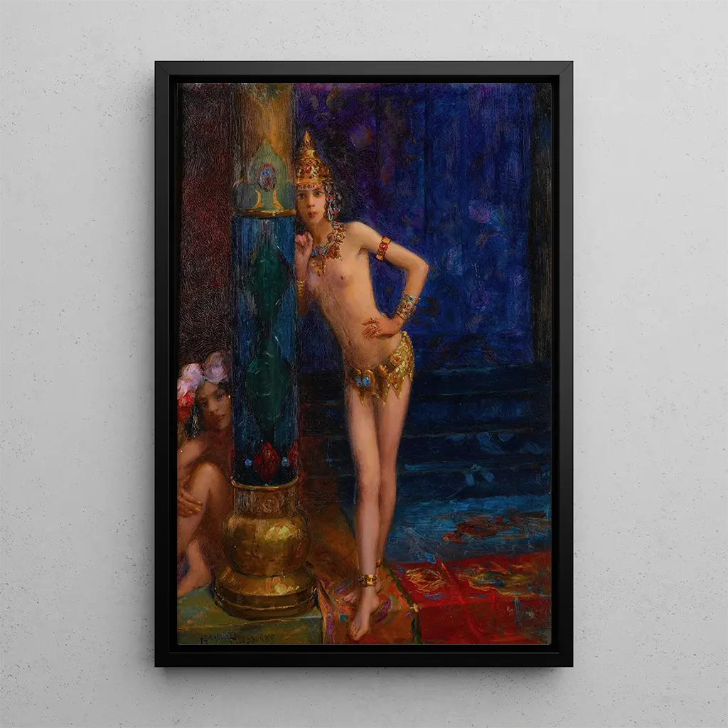 Deux danseuses : een viering van beweging Deux danseuses, een boeiende kunstdruk van Gaston Bussière, vangt de essentie van gratie en elegantie. Het doek beeldt twee vrouwelijke figuren in volle dans uit, hun vloeiende en harmonieuze bewegingen worden benadrukt door zachte en pastelkleuren. De techniek van Bussière, die delicate toetsingen en precieze contouren combineert, creëert een lichte en luchtige sfeer. Elke danseres lijkt te vibreren van energie, en nodigt de kijker uit om de schoonheid van beweging en de emotie die ervan uitgaat te voelen. Dit kunstdruk is een ware ode aan de kunst van dans, en viert vrouwelijkheid en creativiteit. Gaston Bussière : een kunstenaar op het kruispunt van invloeden Gaston Bussière, geboren in 1862, is een Franse kunstschilder wiens werk binnen de symbolistische stroming valt. Geïnspireerd door de art nouveau en hedendaagse bewegingen, heeft hij een stijl ontwikkeld die eigen is, en die sensualiteit en mysterie combineert. Zijn werken, vaak bevolkt door vrouwelijke figuren, verkennen thema's zoals schoonheid, natuur en ontsnapping. Deux danseuses is een perfect voorbeeld van zijn talent om beweging en emotie te weergeven, terwijl hij binnen een rijke en gevarieerde artistieke traditie blijft. Zijn nalatenschap blijft voortleven, en inspireert vele kunstenaars en kunstliefhebbers. Een decoratieve aanwinst met vele voordelen De kunstdruk van Deux danseuses is een decoratieve keuze die uw woonruimte zal verfraaien, of het nu in een woonkamer, kantoor of slaapkamer is. De afdrukkwaliteit garandeert een opmerkelijke fideliteit aan de nuances en details van het originele werk, waardoor u de magie van de dans volledig kunt ervaren. Dit schilderij brengt een vleugje elegantie en dynamiek in uw interieur, en vormt tevens een uitstekend uitgangspunt voor artistieke discussies. Door deze doek in uw decoratie te integreren, geeft u uw omgeving een inspirerende en verfijnde sfeer.
