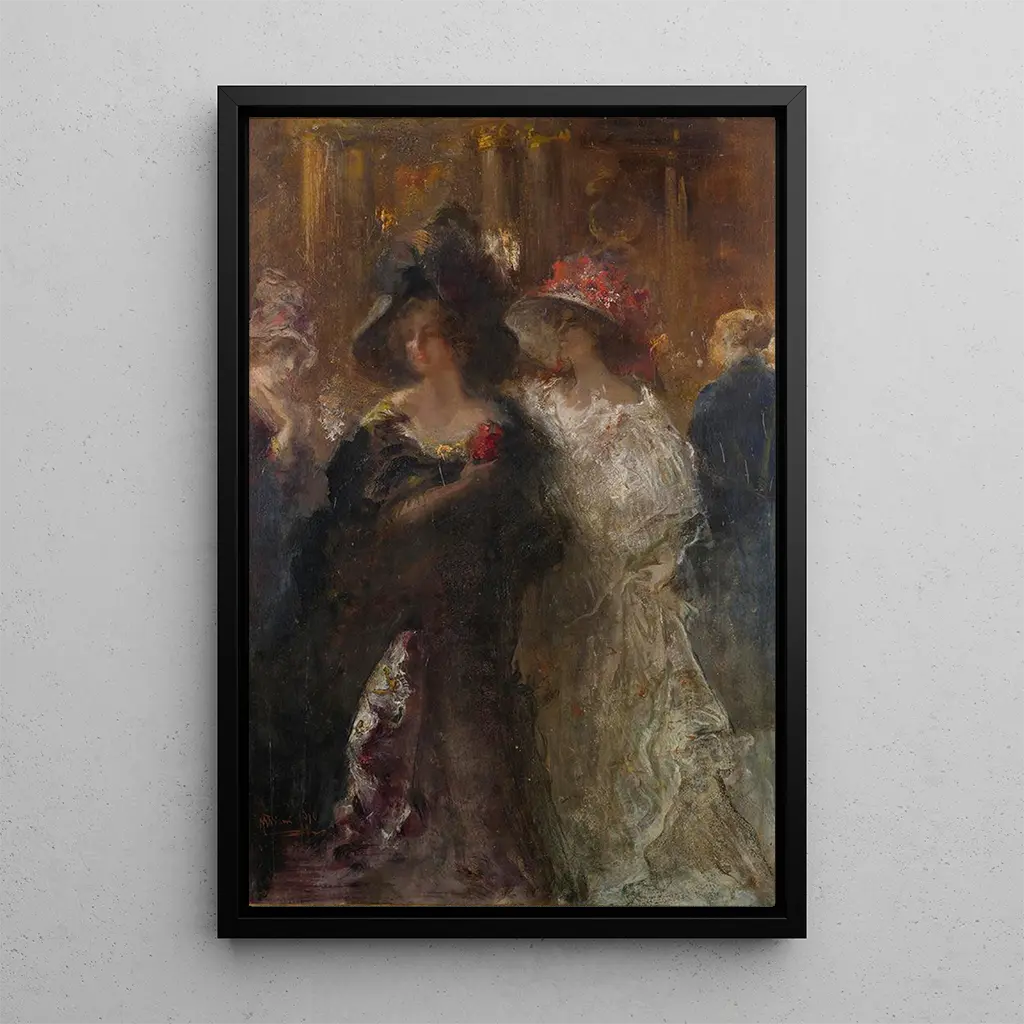 Deux dames élégantes : een portret van tijdloze gratie In het werk "Deux dames élégantes" vangt Pompeo Mariani de essentie van mode en vrouwelijke elegantie aan het einde van de XIXe eeuw. De twee figuren, gekleed in weelderige jurken, staan met een gracieuze houding, omringd door een rijk versierd decor. De levendige kleuren, variërend van pastelkleuren tot diepere tinten, creëren een sfeer die zowel romantisch als verfijnd is. De techniek van Mariani, die realisme combineert met een vleugje romantiek, brengt deze dames tot leven en roept een stille geschiedenis op van verfijning en schoonheid. Elk detail, van de plooien in de stoffen tot de delicate uitdrukkingen, getuigt van de vaardigheid van de kunstenaar om elegantie te vereeuwigen. Pompeo Mariani : een meester van het portret in het tijdperk van het modernisme Pompeo Mariani, geboren in 1857 in Milaan, is een iconische kunstenaar van de Italiaanse kunstbeweging van de XIXe eeuw. Geïnspireerd door het realisme en het symbolisme onderscheidt hij zich door zijn vermogen om levensmomenten met grote gevoeligheid vast te leggen. Mariani kreeg zijn opleiding aan de Accademia di Belle Arti di Brera, waar hij zijn unieke stijl ontwikkelde, die minutieuze details combineert met evocatieve sferen. Zijn kunstwerk "Deux dames élégantes" past in een periode waarin de voorstelling van de vrouw in de kunst evolueert, en weerspiegelt de sociale en culturele veranderingen van zijn tijd. De kunstenaar heeft zich weten te vestigen als een onmisbare figuur en heeft een blijvende erfenis achtergelaten in de wereld van de kunst. Een decoratieve aanwinst met vele voordelen De kunstdruk van "Deux dames élégantes" is een ideaal decoratief stuk om je interieur te verrijken, of het nu in een woonkamer, kantoor of slaapkamer is. De afdrukkwaliteit en de trouw aan de originele details maken van dit doek een perfecte keuze voor kunstliefhebbers en decoratie-enthousiastelingen. Met zijn onmiskenbare esthetische aantrekkingskracht brengt het een vleugje verfijning en elegantie in elke ruimte. Door deze kunstdruk in je inrichting te integreren, nodig je niet alleen artistieke schoonheid uit in je dagelijks leven, maar creëer je ook een boeiend gespreksonderwerp voor je gasten.