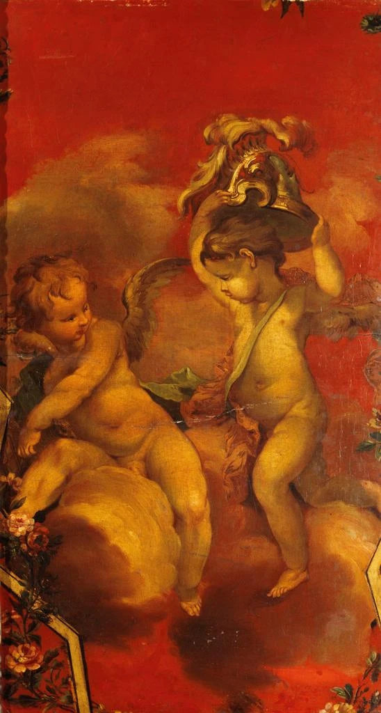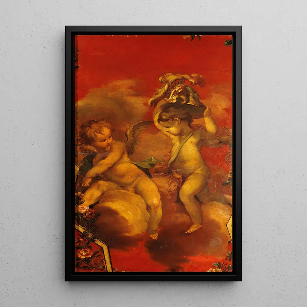 Kunstdruk | Twee geniën met een helm - Franse school