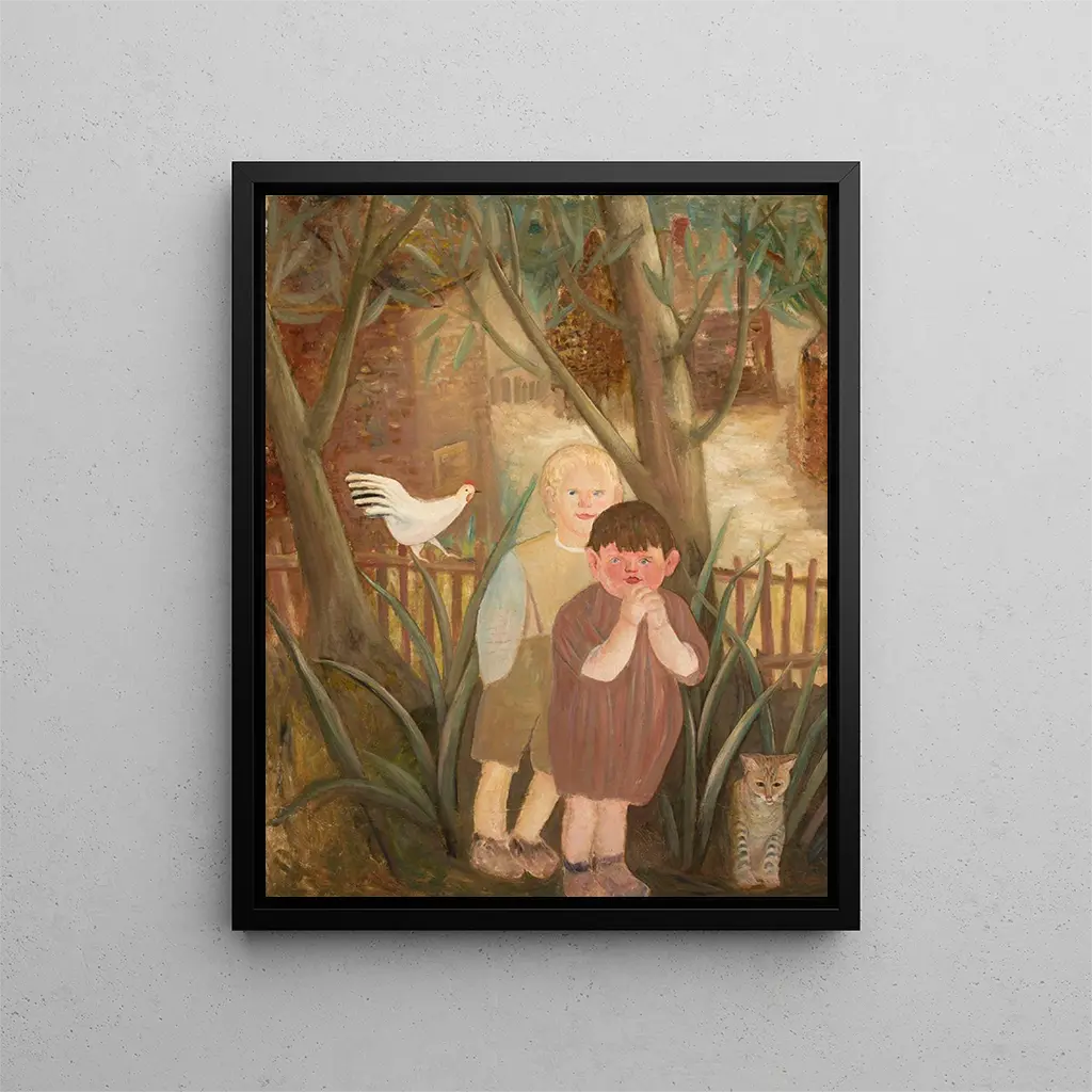 Twee kinderen met een kat - Tadeusz Makowski
