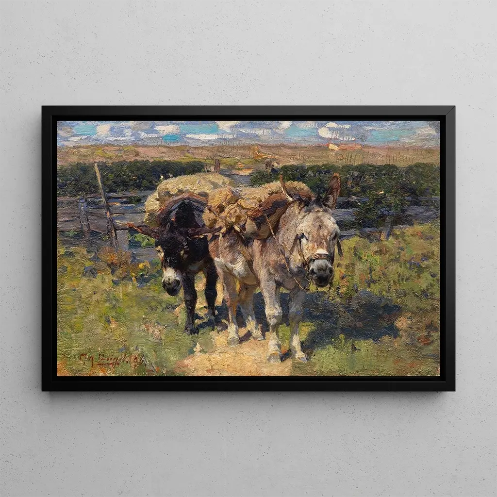 De kunstdruk van "Deux ezels" is een charmante aanvulling op elke interieurdecoratie, of het nu een woonkamer, keuken of kantoor betreft. De warme sfeer en de bohemien esthetiek brengen een vleugje natuur in uw leefruimte. De kwaliteit van de kunstdruk garandeert een fideliteit aan het originele werk, zodat u kunt genieten van de schoonheid van Zügel in uw eigen huis. Door voor dit schilderij te kiezen, geeft u uw interieur een stuk dat vreugde en contemplatie oproept, terwijl u een artistiek en warm accent toevoegt aan uw decor.