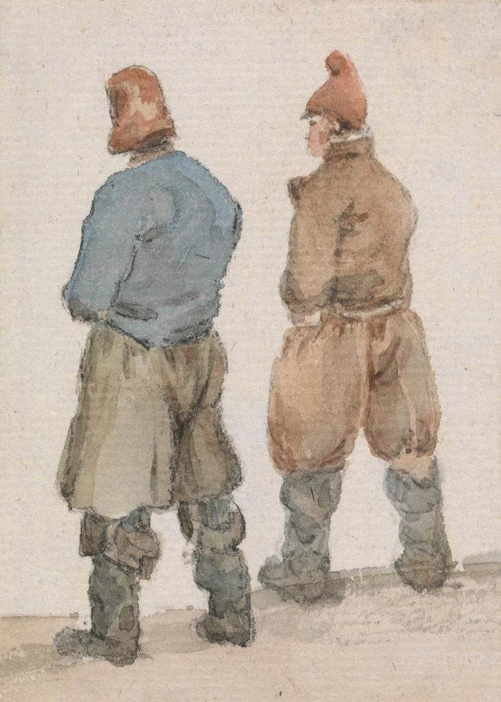 Twee vissers gezien van achteren: een scène van rustige levenssfeer