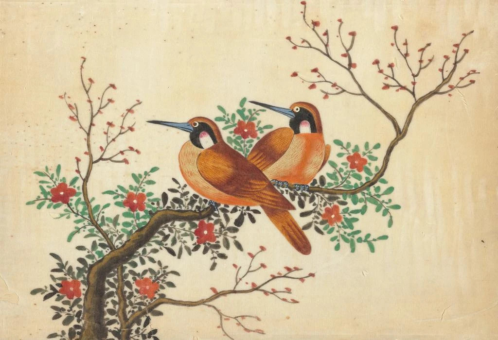 L'œuvre "Deux oiseaux sur une branche d'arbre en fleurs" est attribuée à un artiste anonyme, ce qui souligne l'importance de l'art populaire au fil des siècles. Ce type de peinture, souvent réalisé par des artistes locaux, témoigne d'une sensibilité à la nature et à la vie quotidienne. À une époque où la nature était souvent idéalisée, ces représentations simples et accessibles ont su toucher le cœur des amateurs d'art. L'anonymat de l'artiste n'enlève rien à la valeur de l'œuvre, qui continue d'évoquer des émotions et des souvenirs chez ceux qui la contemplent.