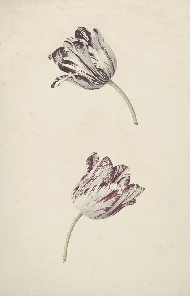 Kunstdruk | Twee witte en rode tulpen - Jan Jansz van der Vinne