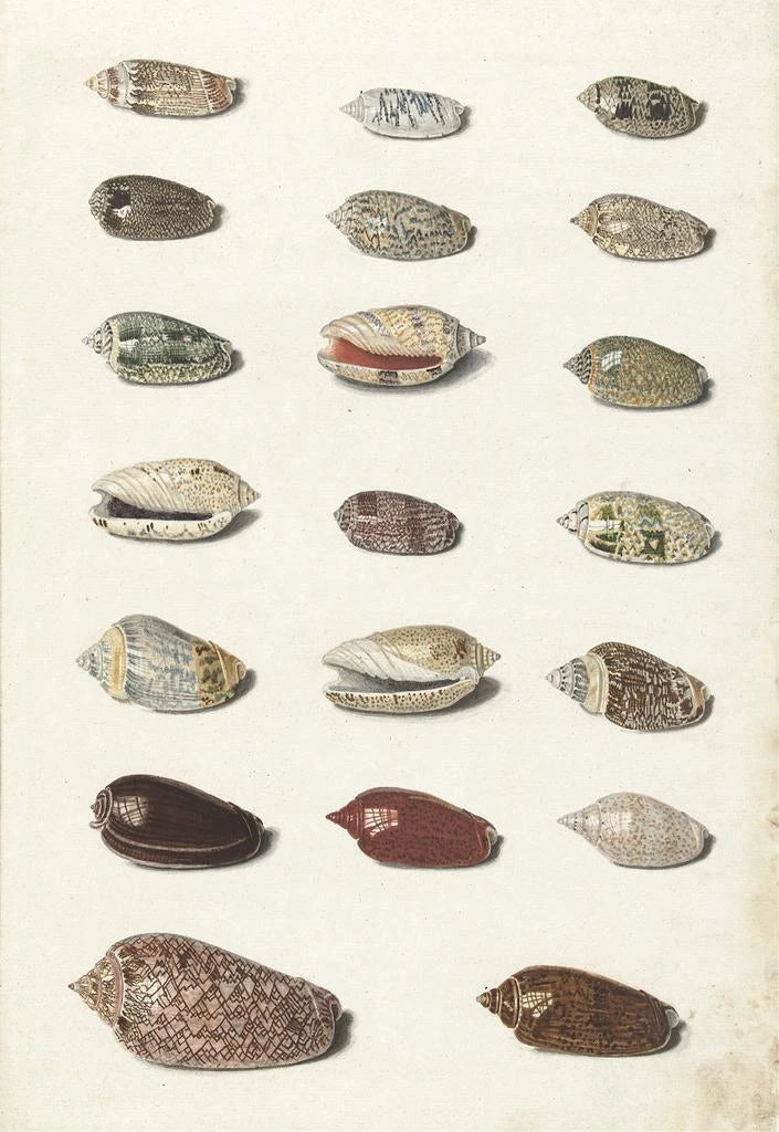 Schilderij Vingt coquillages tropicaux - Johann Gustav Hoch | Kunstdruk
