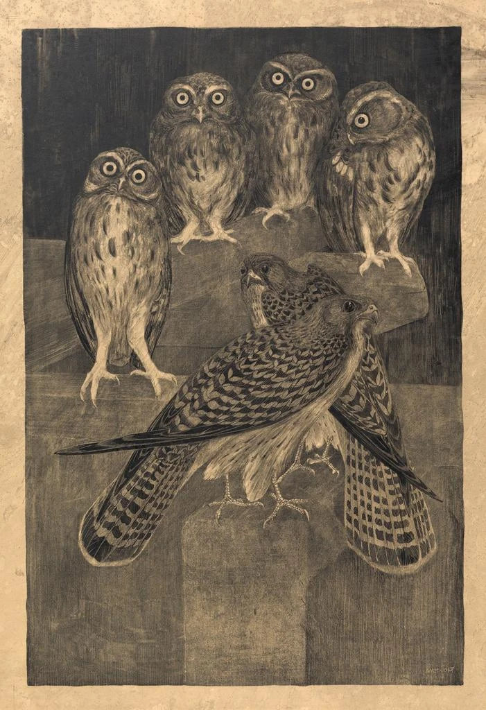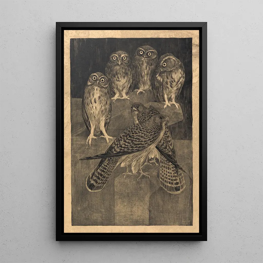 Kunstdruk | Oehoe en torenvalken - Theo van Hoytema