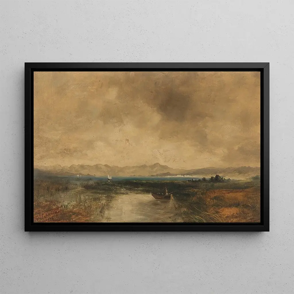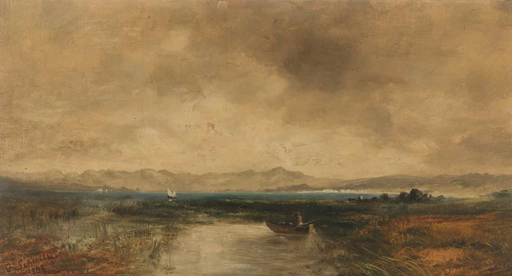 Eduard Schleich de Oudere, een Duitse schilder uit de 19e eeuw, wordt erkend om zijn landschappen die de natuurlijke schoonheid van Duitsland vastleggen. Geïnspireerd door het romantisme, wist hij de emoties op te roepen die door de natuur worden opgewekt in zijn werken. Schleich heeft een deel van zijn leven doorgebracht met het verkennen van meren en bergen, wat zijn stijl diep heeft beïnvloed. "Vue du Chiemsee" getuigt van zijn vaardigheid om licht en sfeer weer te geven, waardoor hij een belangrijke speler is in de evolutie van de landschapsschilderkunst in Europa.