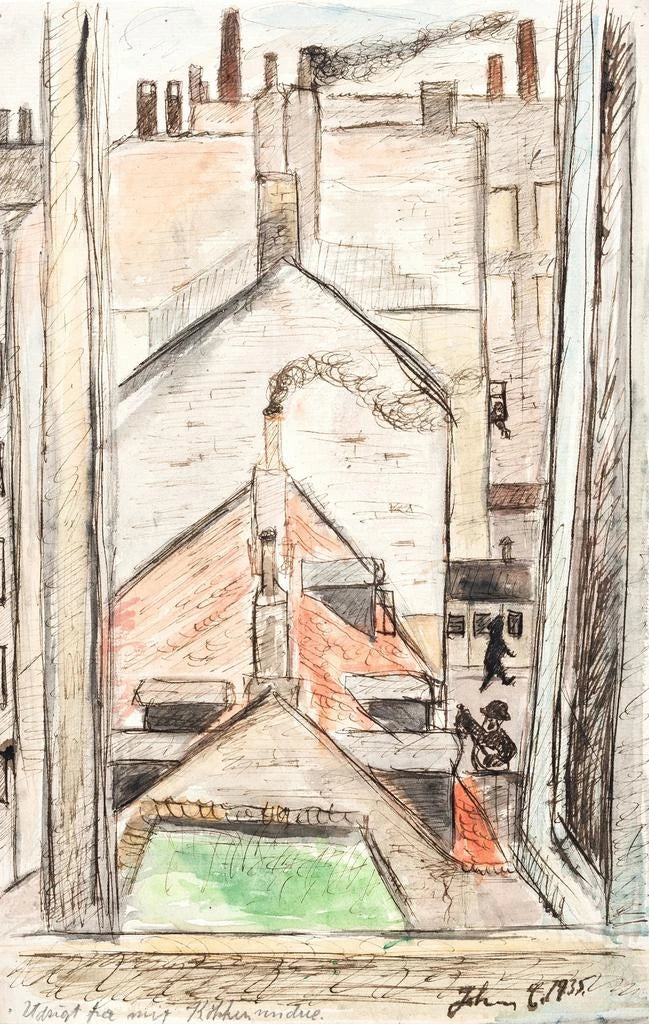 John Christensen, schilder uit het begin van de 20e eeuw, wordt erkend om zijn vermogen om gewone scènes om te toveren tot boeiende kunstwerken. Zijn stijl, beïnvloed door het impressionisme, richt zich op licht en kleur, en probeert de essentie van vluchtige momenten vast te leggen. Door thema's te verkennen die verband houden met de natuur en het dagelijks leven, wist hij een emotionele band met zijn publiek op te bouwen. "Vue depuis ma fenêtre de cuisine" illustreert deze aanpak perfect en biedt een persoonlijke kijk op de schoonheid van alledaagse momenten. Het werk van Christensen blijft inspireren en herinnert ons eraan de schoonheid te vinden in onze directe omgeving.