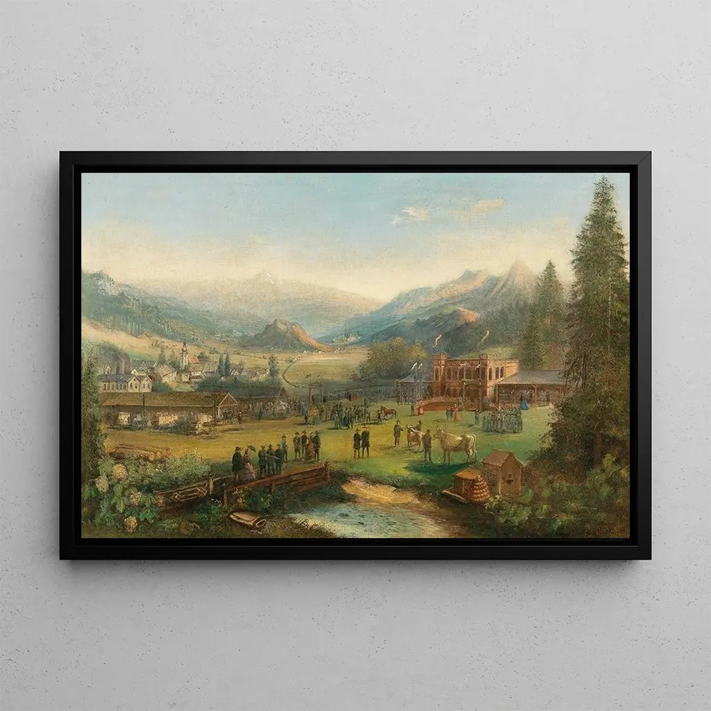 Vallée avec usine et bâtiment de fête - Carl Thöndel