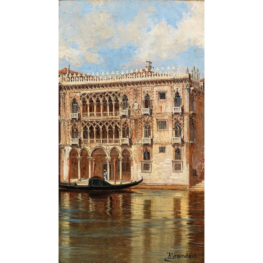 Antonietta Brandeis, kunstenaar uit de 19e eeuw, staat bekend om haar Venetiaanse landschappen die het licht en de ziel van de stad vastleggen. Geïnspireerd door de grote meesters van de Italiaanse schilderkunst, ontwikkelde zij een unieke stijl, die precisie en gevoeligheid combineert. Haar werk valt in een periode waarin de kunst van het landschapsschilderen een heropleving doormaakt, en zij wordt snel een belangrijke figuur in de kunstwereld. Haar schilderijen, waaronder "Venise Ca' d'Oro", getuigen van een diepe bewondering voor de cultuur en architectuur van Venetië, waardoor zij een ambassadeur wordt van deze tijdloze schoonheid.