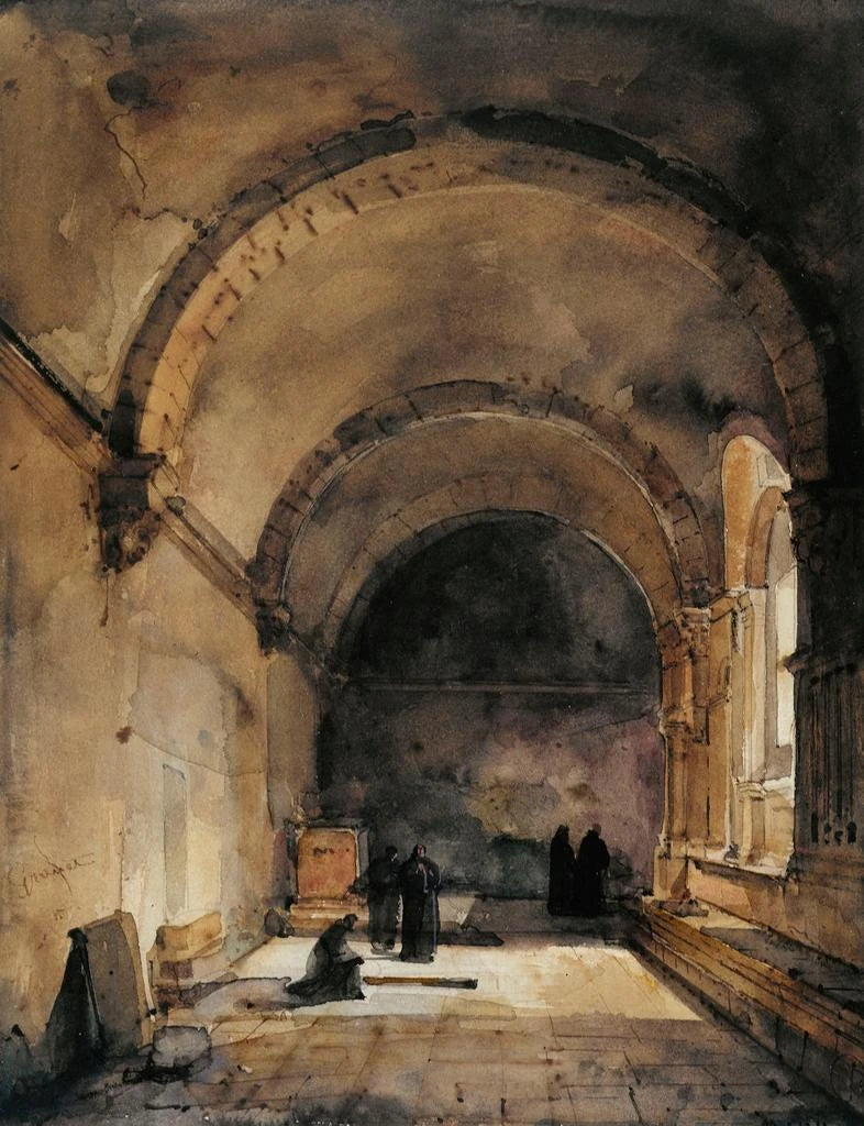 François-Marius Granet, iconisch figuur uit het begin van de 19e eeuw, wist zich te vestigen in de kunstwereld dankzij zijn unieke aanpak en artistieke gevoeligheid. Opgeleid aan de Academie van Rome, werd hij beïnvloed door de grote meesters van de Italiaanse schilderkunst, maar ontwikkelde ook een eigen stijl die hem herkenbaar maakt. Granet heeft vaak thema's verkend die verband houden met het dagelijks leven, spiritualiteit en architectuur, waardoor hij in staat was om momenten uit het menselijke leven vast te leggen met een zeldzame emotionele diepte. Zijn werk heeft een aanzienlijke impact gehad op zijn tijdgenoten