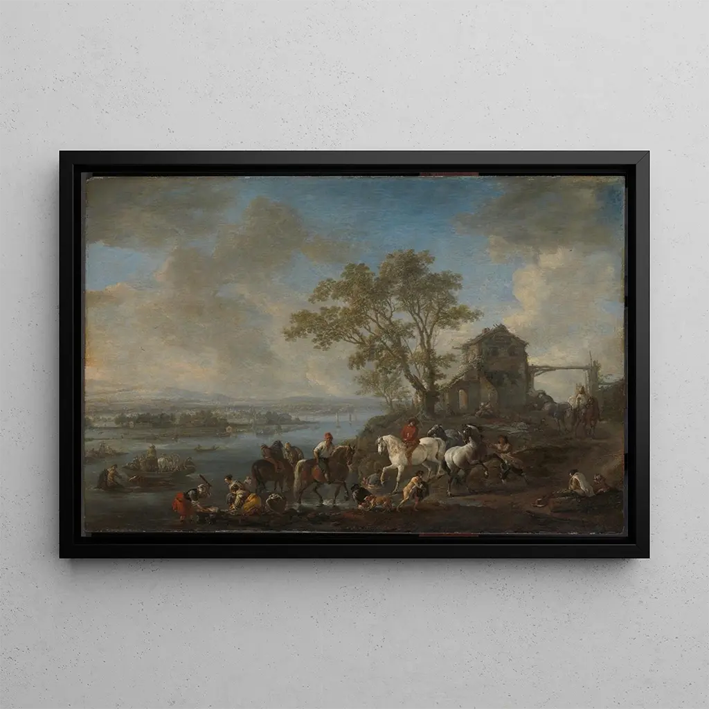 Kunstdruk | Étang à chevaux sur une rivière - Philips Wouwerman