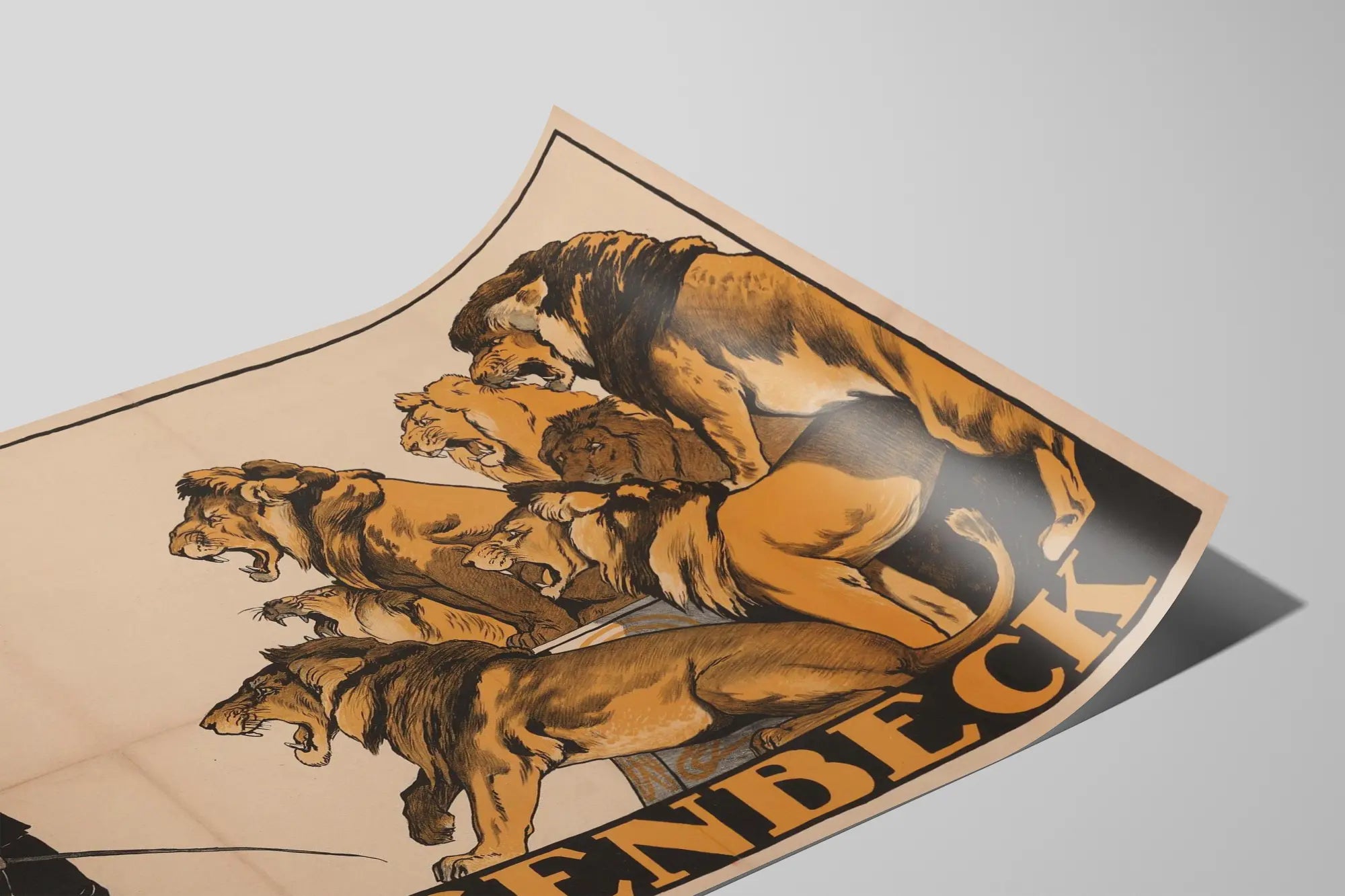 Vintage poster van Wilhelm Hagenbeck en de brullende leeuwen